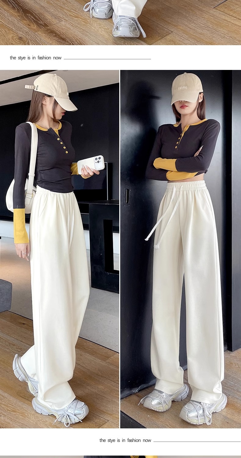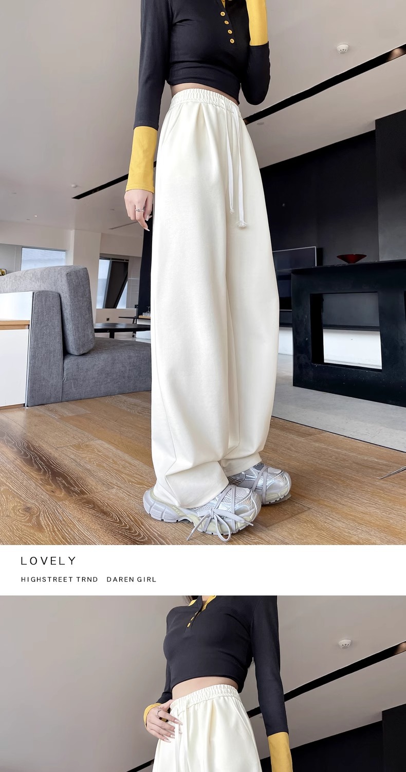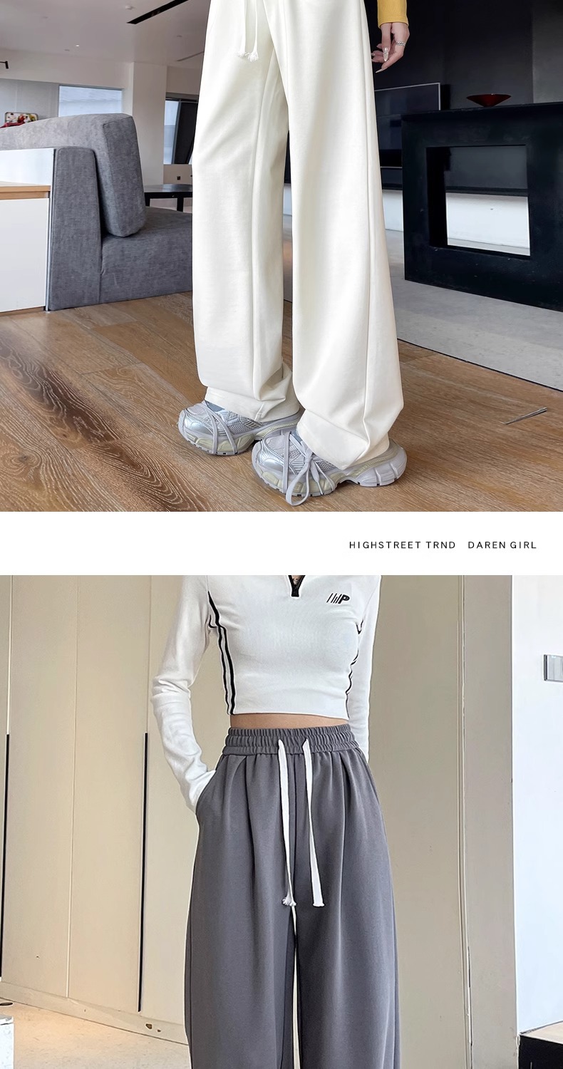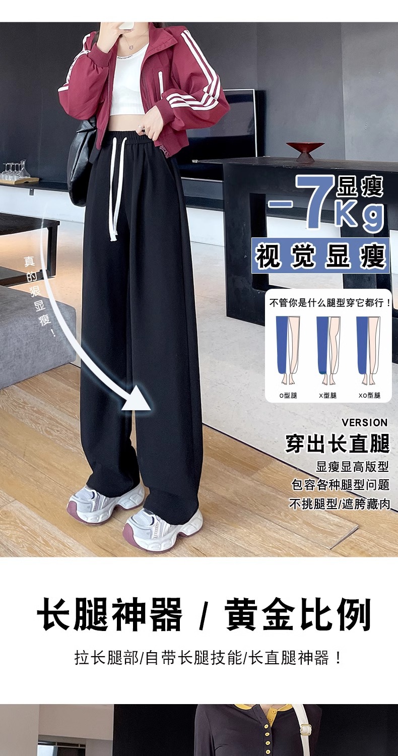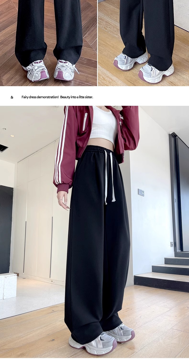 女性用ワイドレッグパンツ 2025 春と秋の新作スポーツストレートカジュアルパンツ小柄な人向け、スリムでドレープのあるバナナパンツ