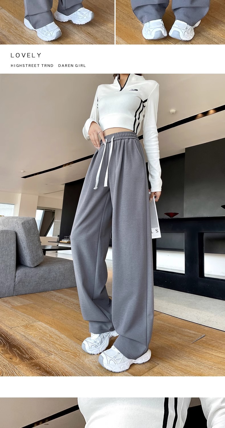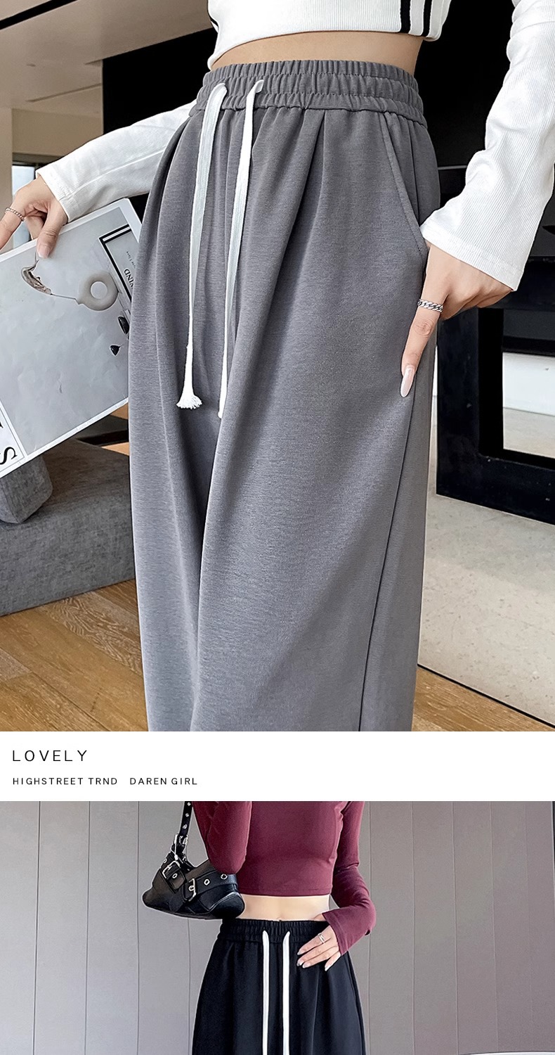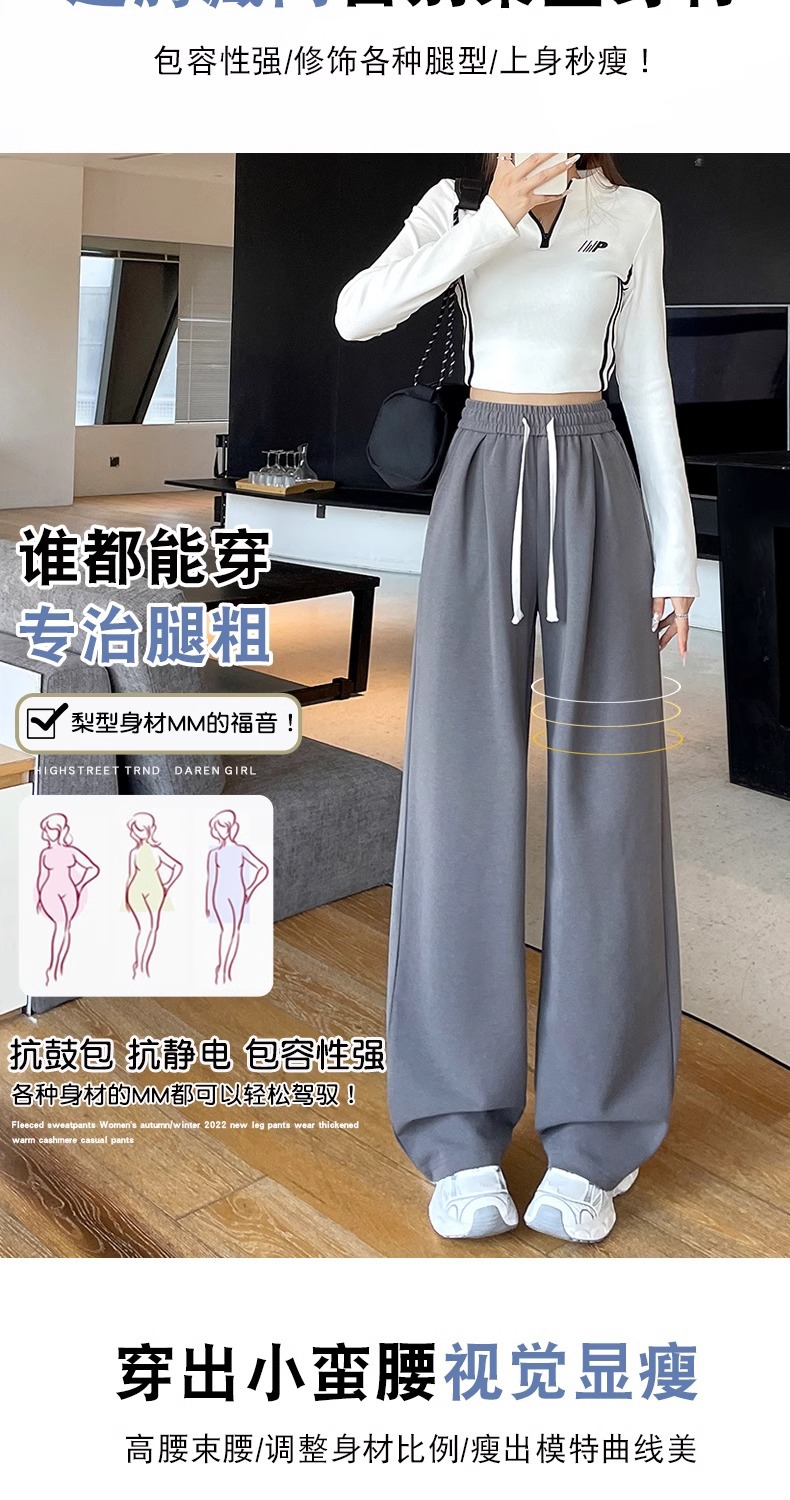 狭い版のバナナのズボンの女性の2025新型の春と秋のベルベットのカジュアルなストレートのスポーツのズボンの灰色の衛のズボンの高い腰の広足のズボン
