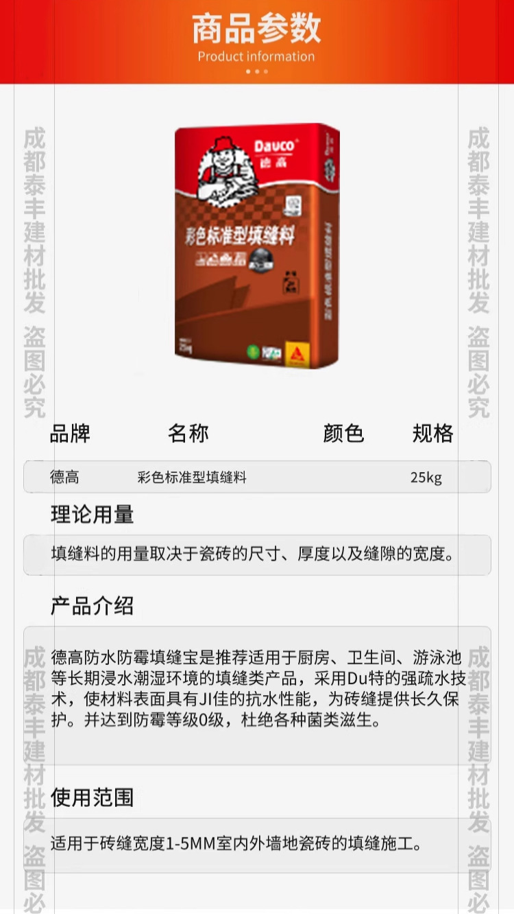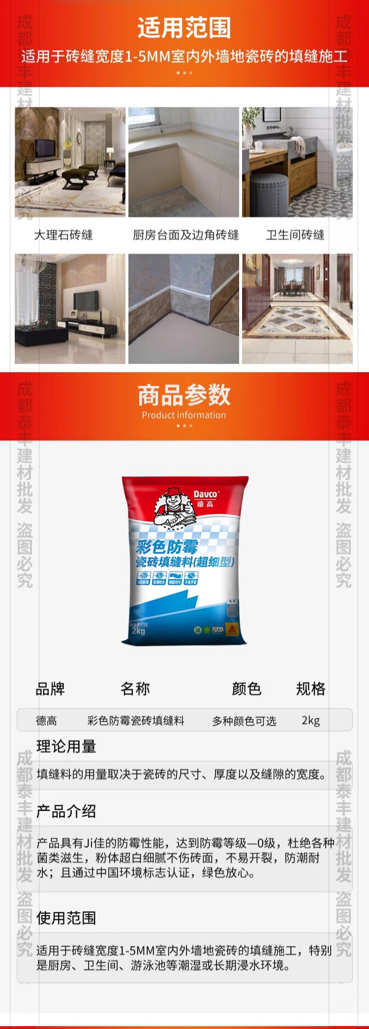 德高填缝剂彩色防水防霉白色填缝料室内外墙地面瓷砖勾缝剂25kg