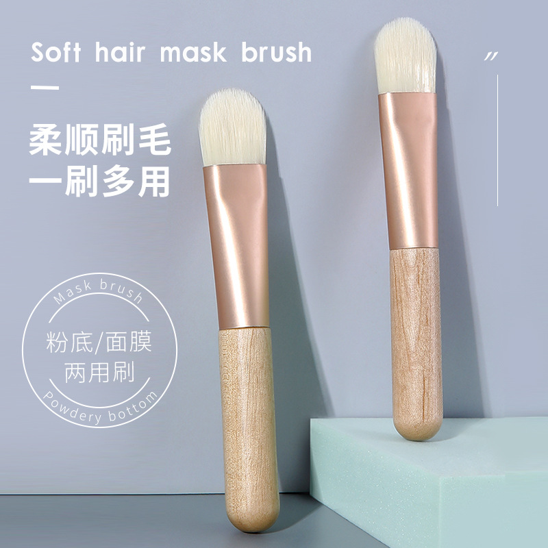 単一の木製化粧ブラシ、ファンデーションブラシ、柔らかい毛の木製ハンドル、ポータブルフェイシャルマスクブラシ、ドロップシッピング泥マスクブラシ