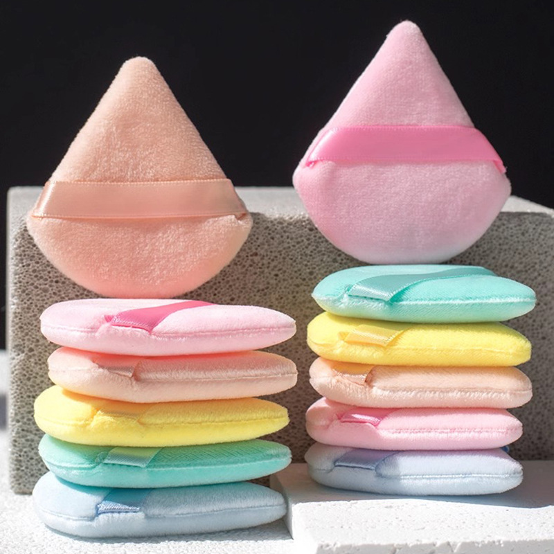 クロスボーダー三角植毛両面パウダーパフメイクアップエアクッション高密度パウダーメイクアップスポンジスーパーソフトクリスタルベルベットウォータードロップパフ