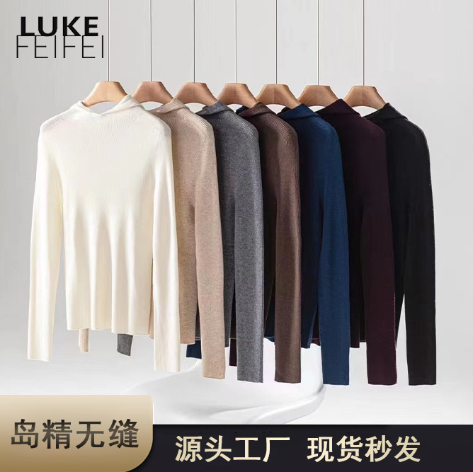 シームレス! 超細いウールの帽子の長袖のウールのセーターの肌のプルオーバーのセーターは身を修めてニットの女性を打ちます。