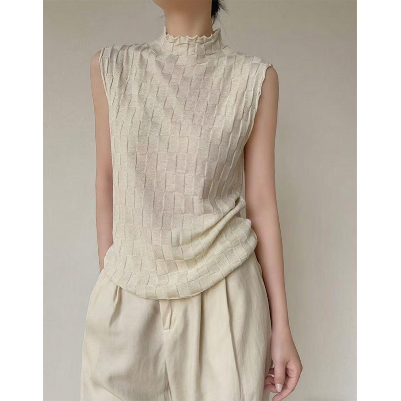 菱格方块肌理醋酸羊毛半高领无袖背心薄款内搭上衣百搭打底针织衫