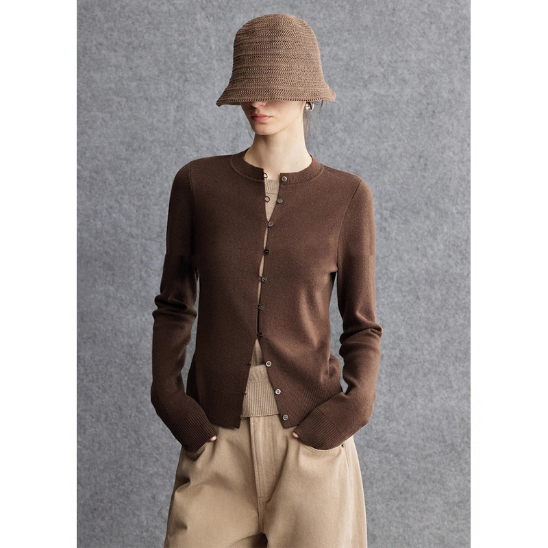 100%羊毛假两件圆领针织开衫撞色叠穿上衣设计感修身针织衫秋冬新