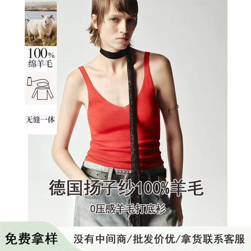 无缝一体/扬子纱V领针织吊带背心修身坑条无袖打底衫薄款内搭上衣