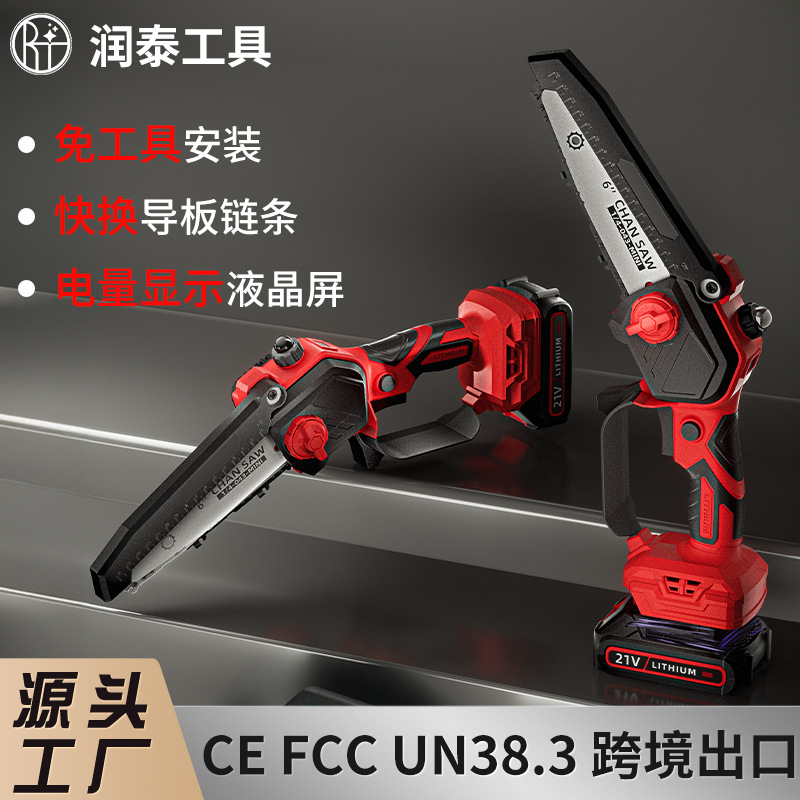 ミニチェーンソーリチウム電池電気チェーンソー充電式庭の伐採のこぎり家庭用ワイヤレス片手鋸ハンドヘルド高枝のこぎり