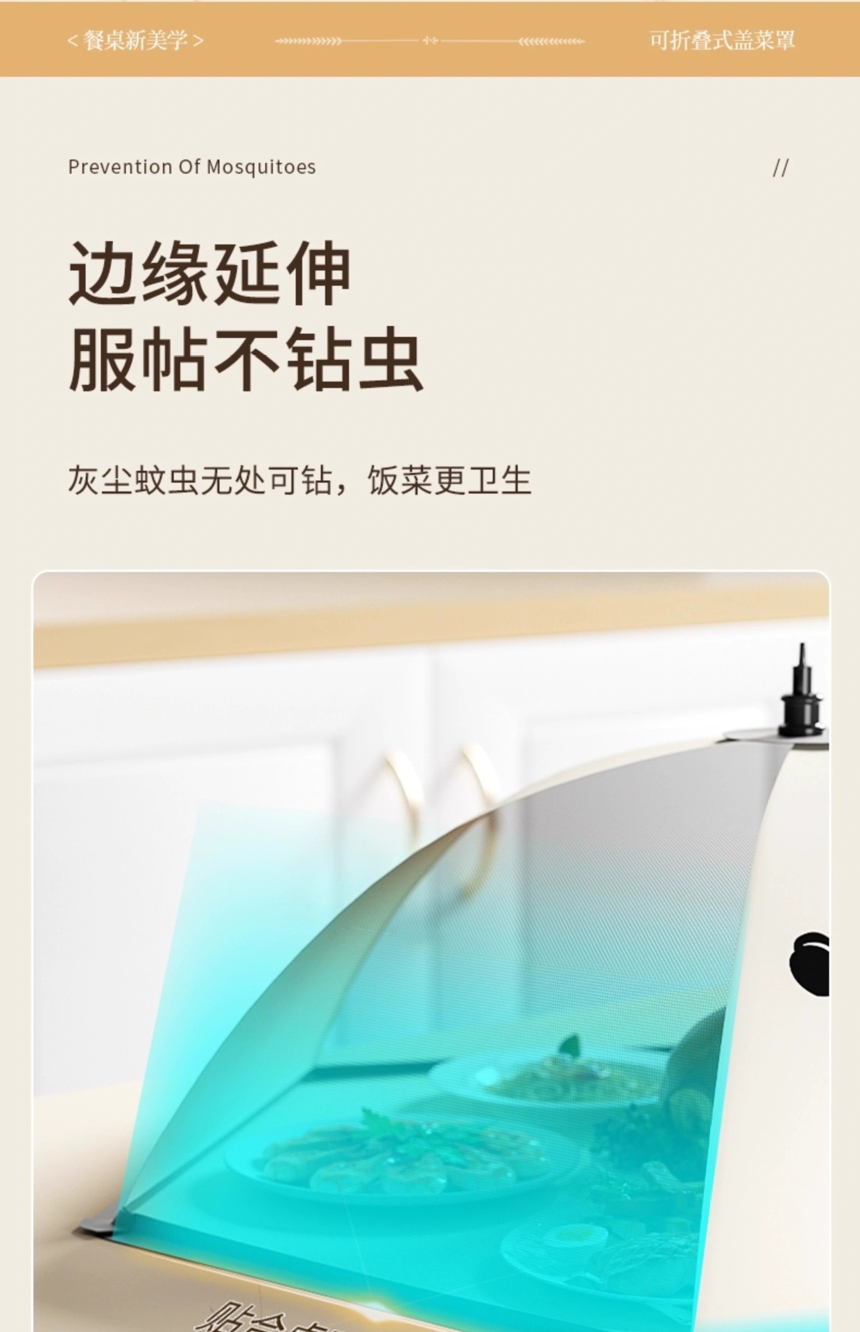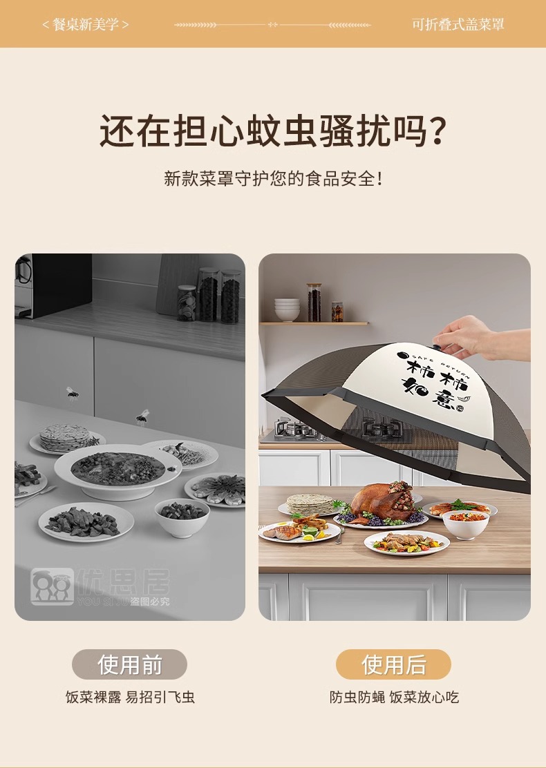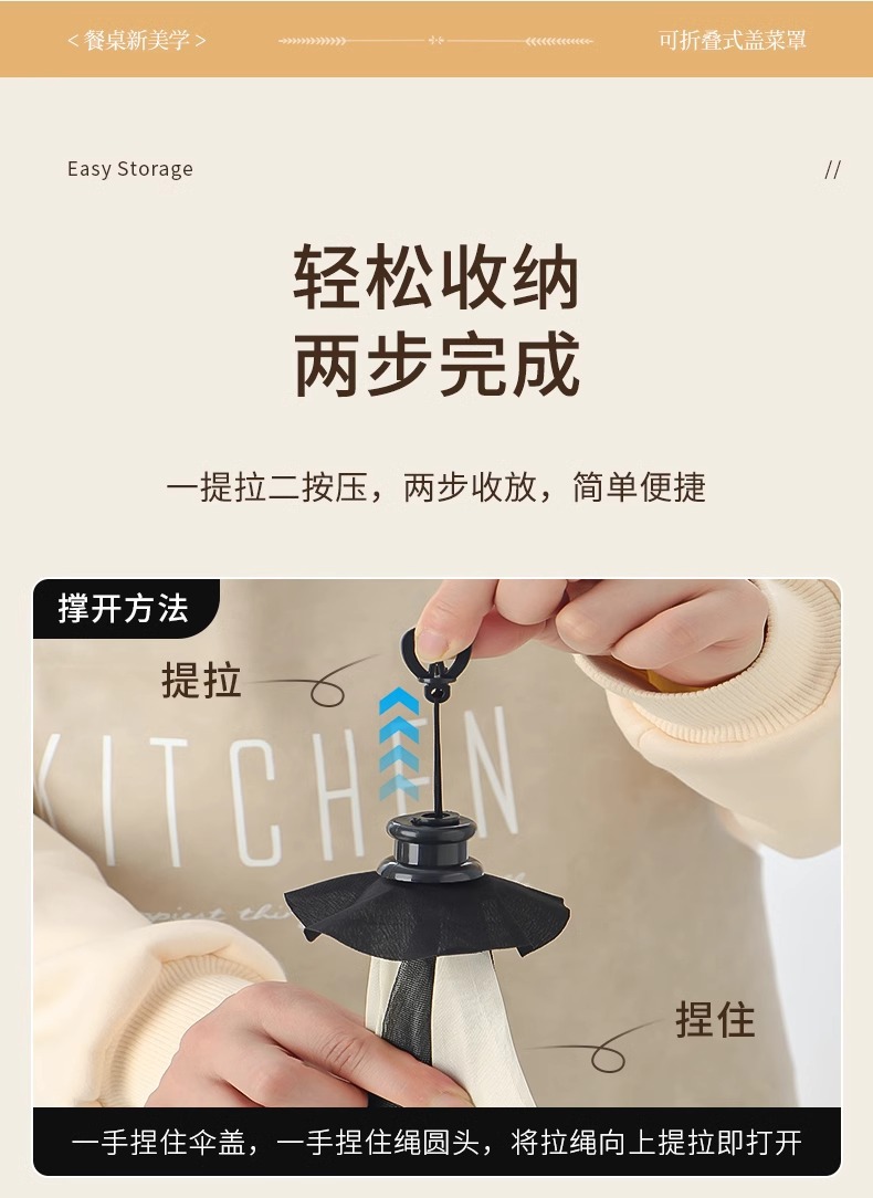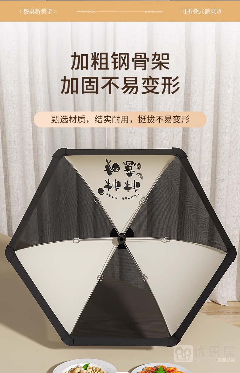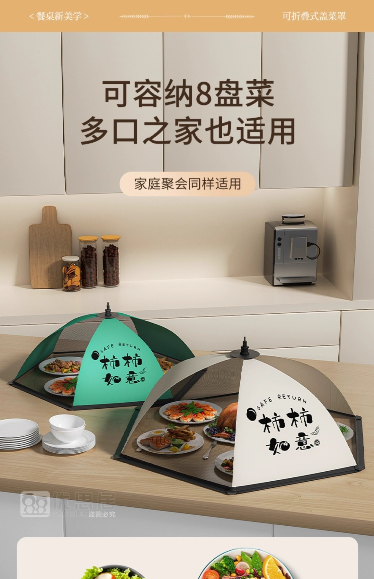 抗菌菜盖罩2025新款家用饭菜遮尘高级可折叠餐桌防虫网罩菜罩神器
