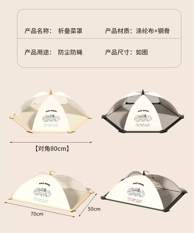 2024年折りたたみ式テーブル用防塵・防虫フードカバー、残り物用家庭用カバー、携帯用食品カバー