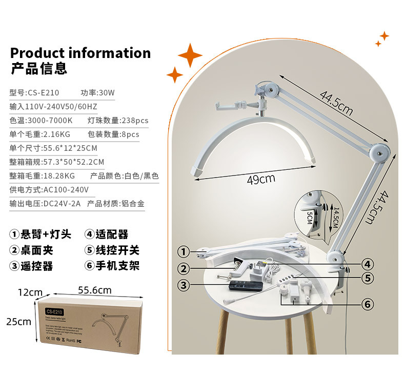 30ワット19インチデスクトップネイル補助灯紋刺繍アイライトmoon light美まつげ補光美容半月灯