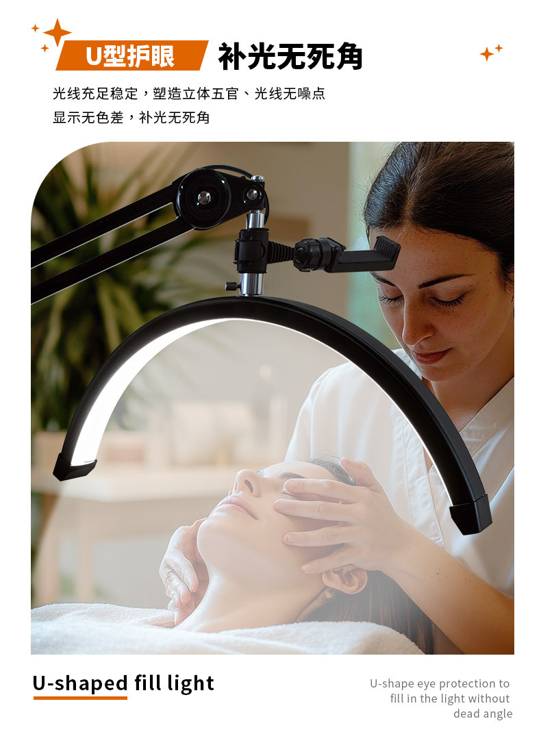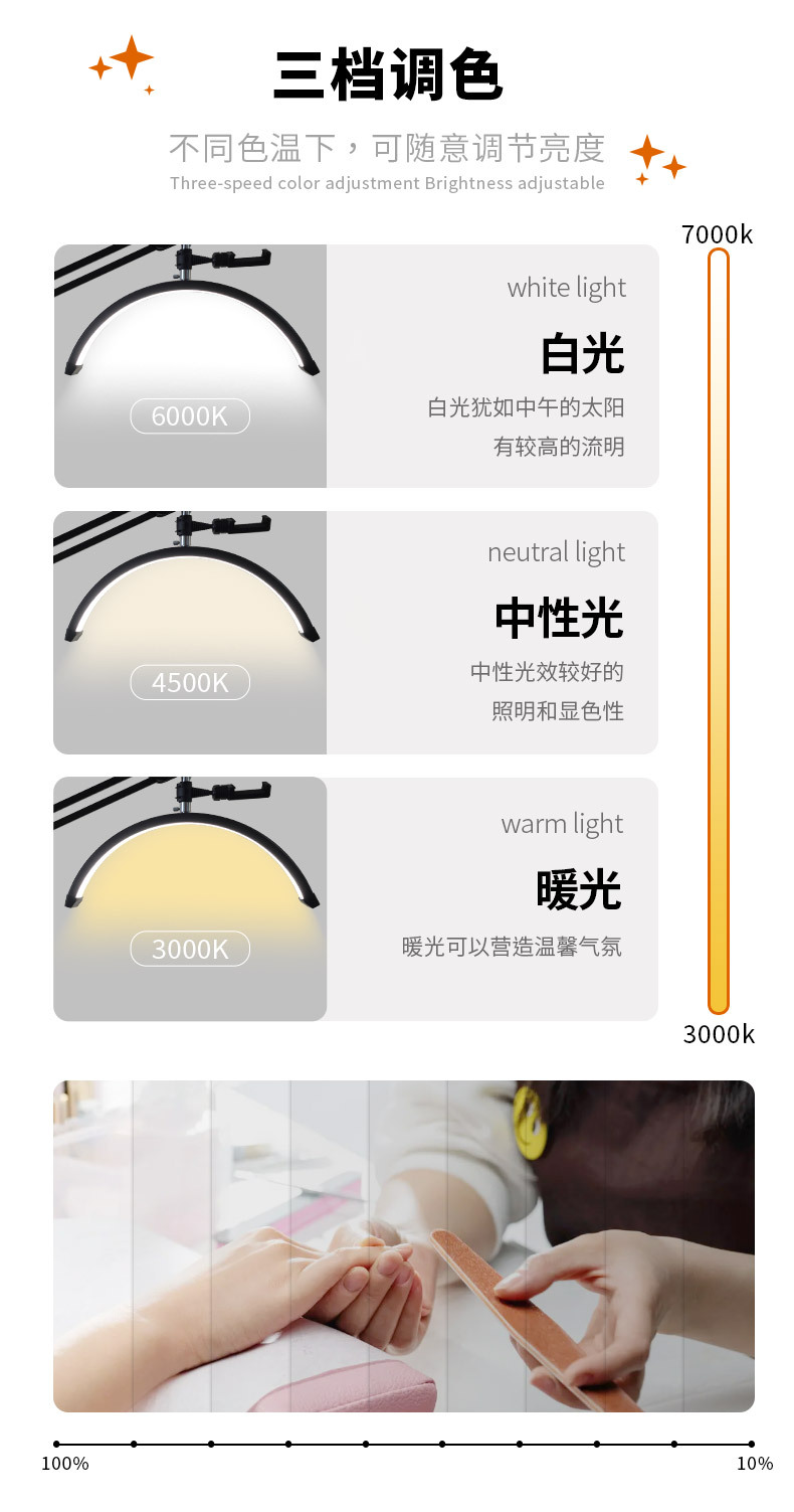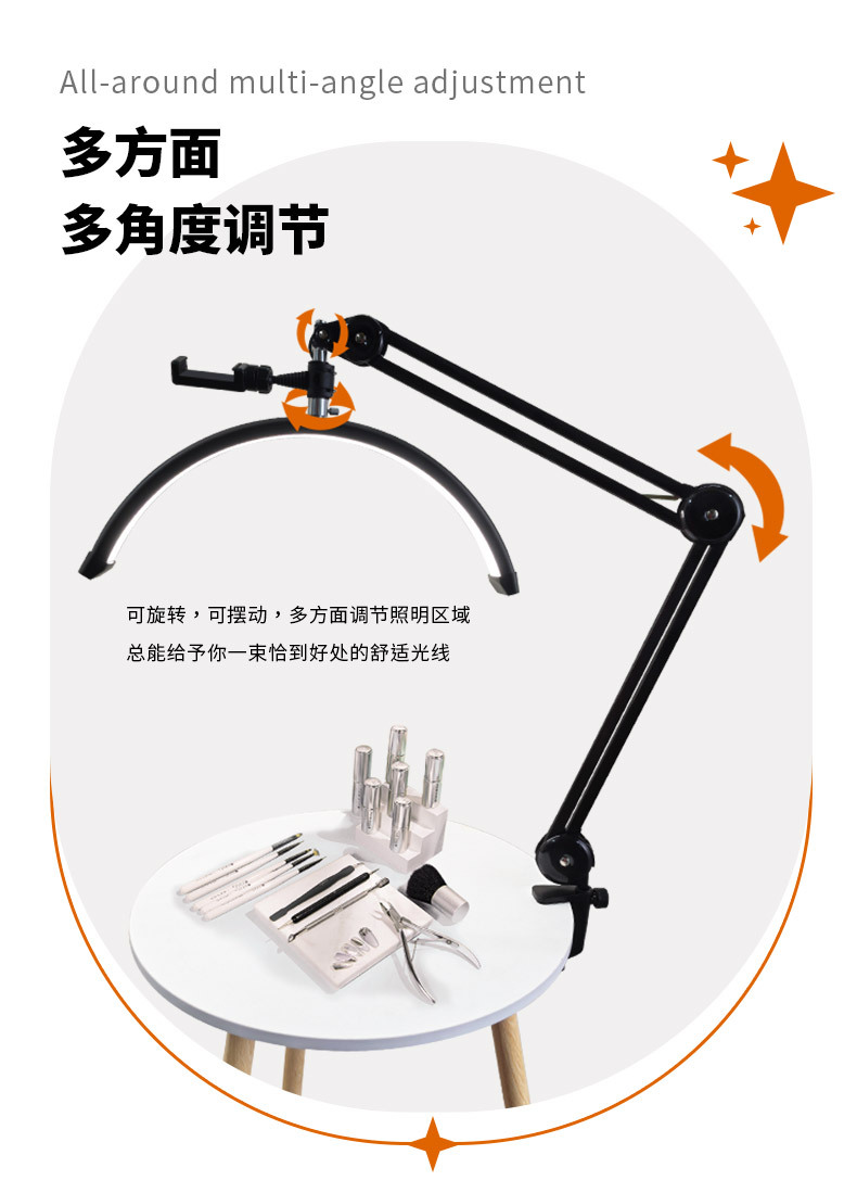 新型アマゾン19/23インチ半月美容灯LED保護眼U字紋刺繍美目前デスクトップ半月ネイルランプ