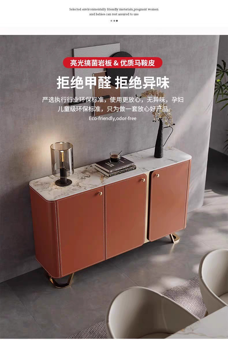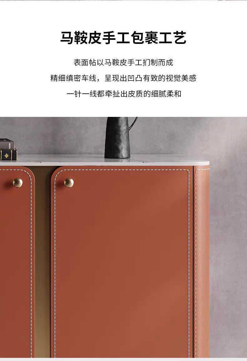 简介:出货时间约10天左右,近期推出的新款,主要材质多层实木框架柜身。外面采用马鞍山皮包裹,四周压线!高级感满满!桌面可以采用耐刮岩板或者马鞍皮,产品可以定制颜色,配套性非常强!