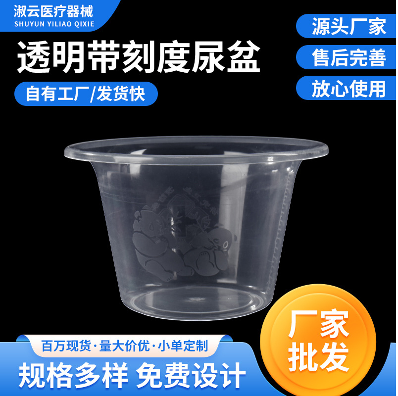 老人孕妇塑料透明尿盆宝宝刻度夜壶痰盂便盆女接尿器尿桶带便盆