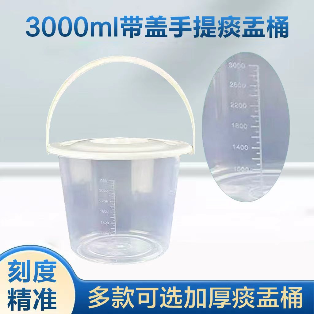 加厚塑料刻度桶3000ml带提手带盖子医院用白色大容量水桶加厚尿桶
