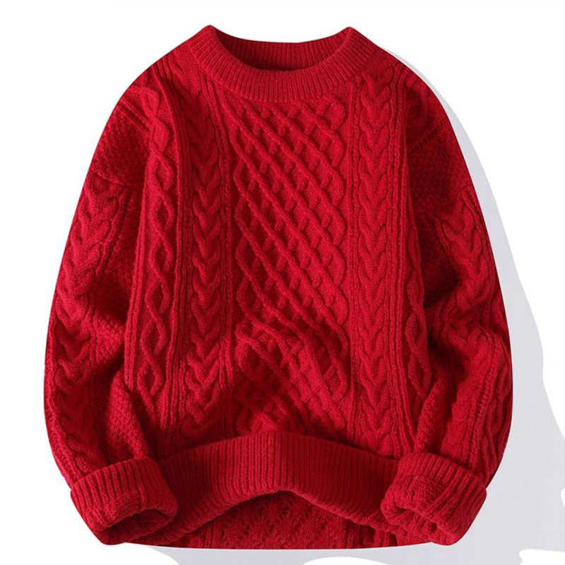 跨境本命年红色毛衣秋冬季男慵懒感粗麻花针织衫外套圣诞铭亦