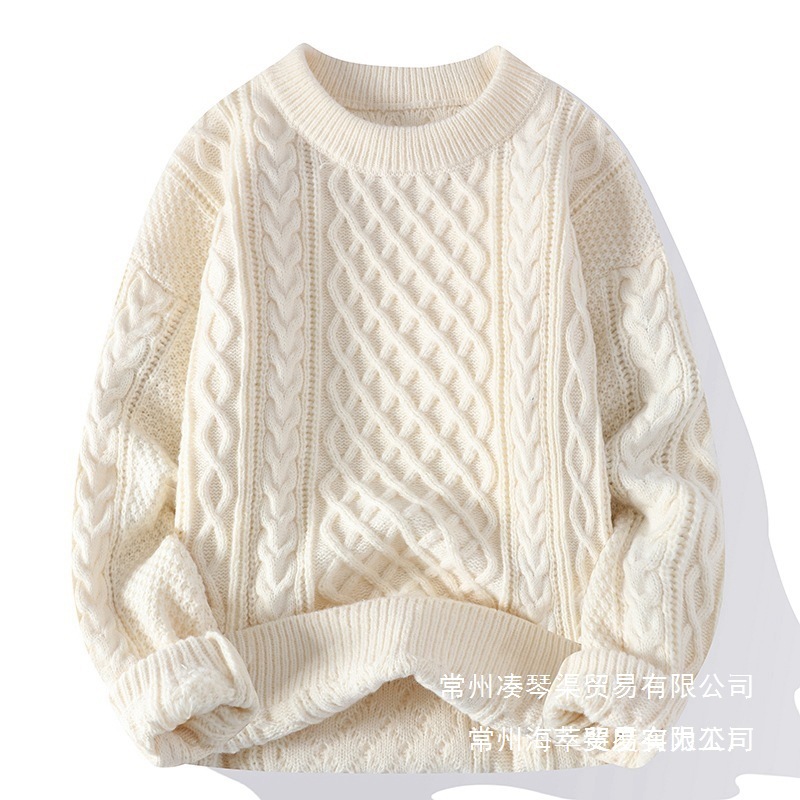 冬装毛衣男士新款圆领纯色针织衫春秋线衣帅气麻花加绒加厚打批发