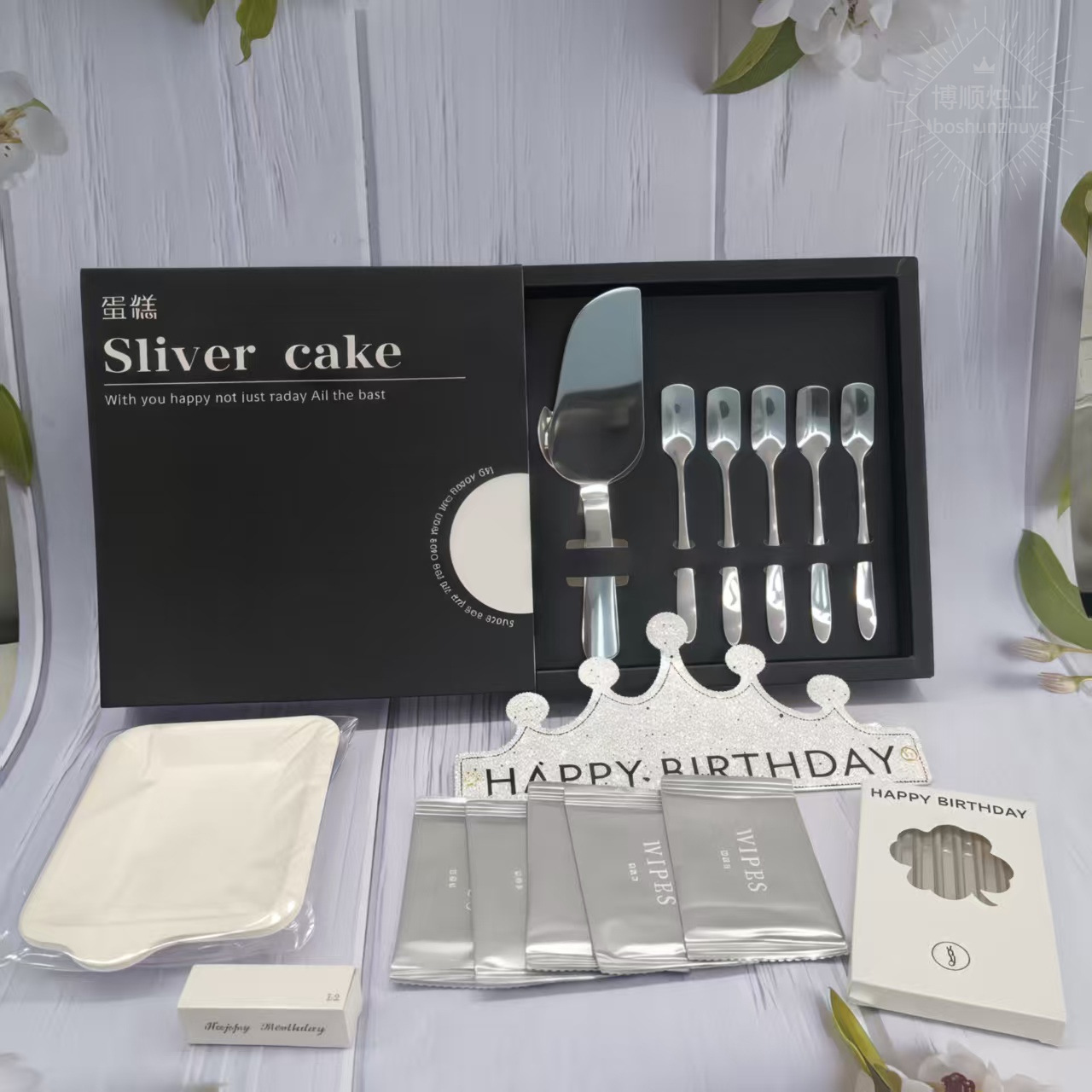 シルバー: 短柄ナイフ 1 本 + 三叉フォーク 5 本 + キャンドル 1 箱 + バースデーハット 1 個 + マッチ 1 箱 + ケーキプレート 5 枚 + ウェットティッシュ 4 枚,シルバー: 柄の短いナイフ 1 本 + アイスクリーム スクープ 5 個 + キャンドル 1 箱 + 誕生日帽子 1 個 + マッチ 1 箱 + ケーキプレート 5 枚 + ウェットティッシュ 4 枚,ゴールド: 短柄ナイフ 1 本 + 三叉フォーク 5 本 + キャンドル 1 箱 + バースデーハット 1 個 + マッチ 1 箱 + ケーキプレート 5 枚 + ウェットティッシュ 4 枚,ゴールド: 柄の短いナイフ 1 本 + アイスクリームスクープ 5 個 + キャンドル 1 箱 + 誕生日帽子 1 個 + マッチ 1 箱 + ケーキプレート 5 枚 + ウェットティッシュ 4 枚