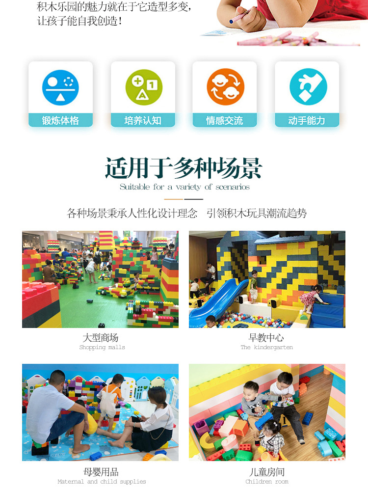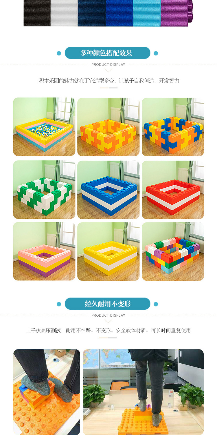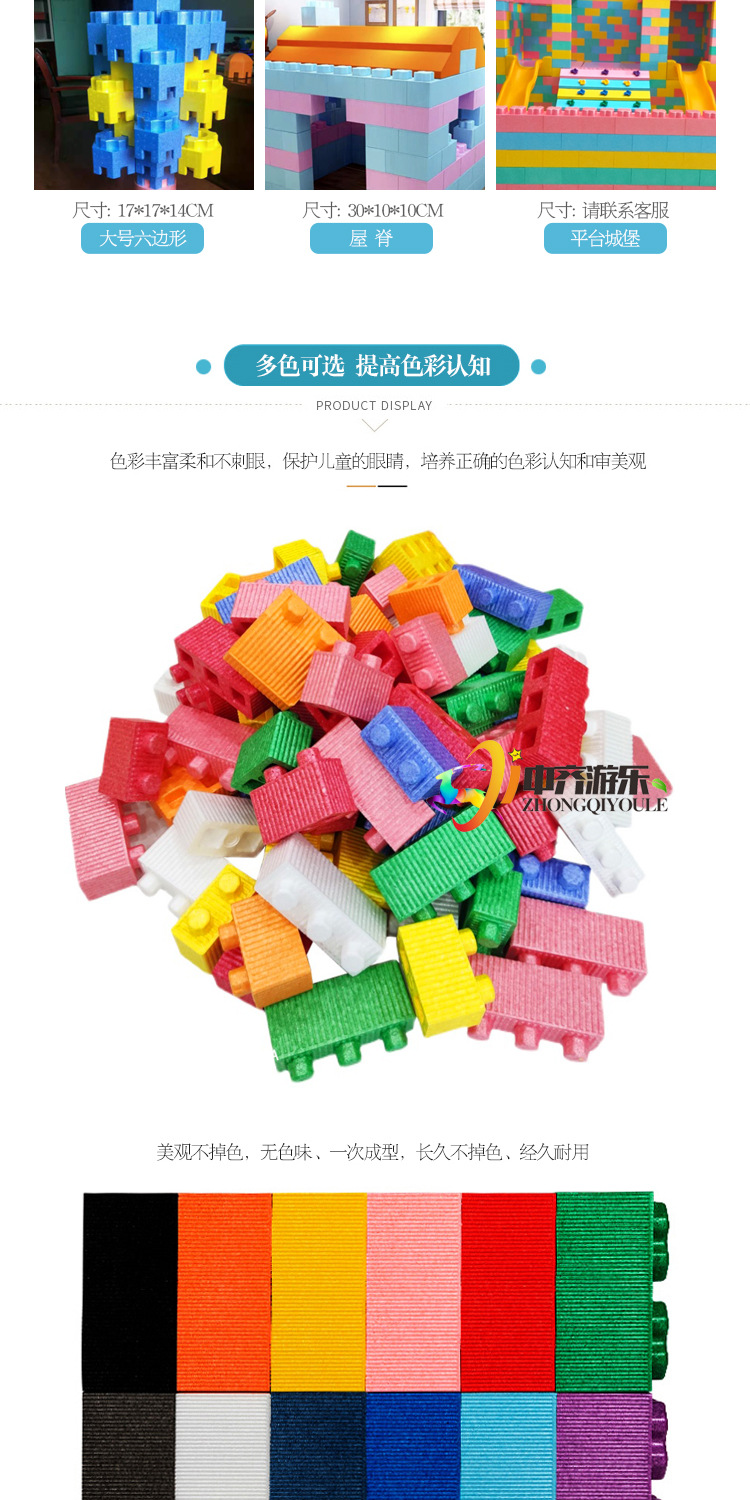 本产品材质是发泡聚丙烯(Expanded polyprlene) 简称epp积木,是一种新型泡沫的简称,比重轻弹性好抗震抗压、变形恢复率高、吸收性能好、耐油、耐酸、耐碱、不吸水、耐热(40-130°C)无毒无气味等优点,还有积木在发货过程中偶尔可能会出现个别积木轻微压痕但不会影响使用,这个是没办法避免的,积木颜色丰富多彩多样,非常感谢您的支持欢迎下单。