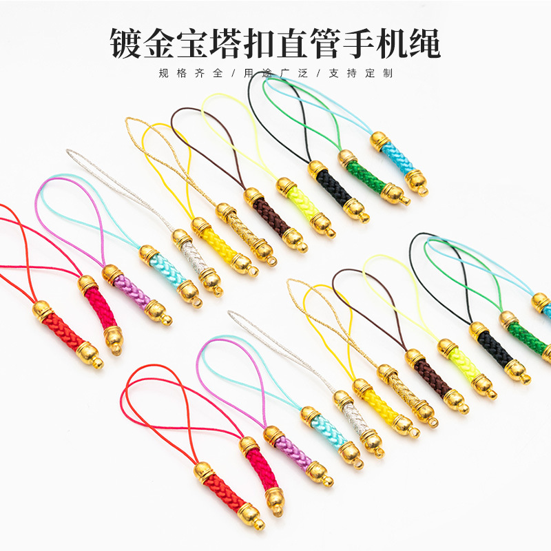 卸売双頭携帯電話ストラップコーンスティック編組ロープ diy 人工シルクゴールデンクラウンヘッド編組携帯電話ストラップ
