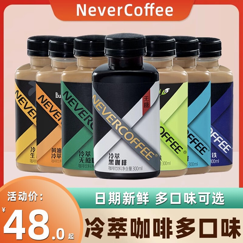 NeverCoffee 水出しコーヒー ボトル入り すぐに飲めるアイスブログ 生ココナッツ ジャスミン ラテ 無糖ブラック コーヒー ドリンク
