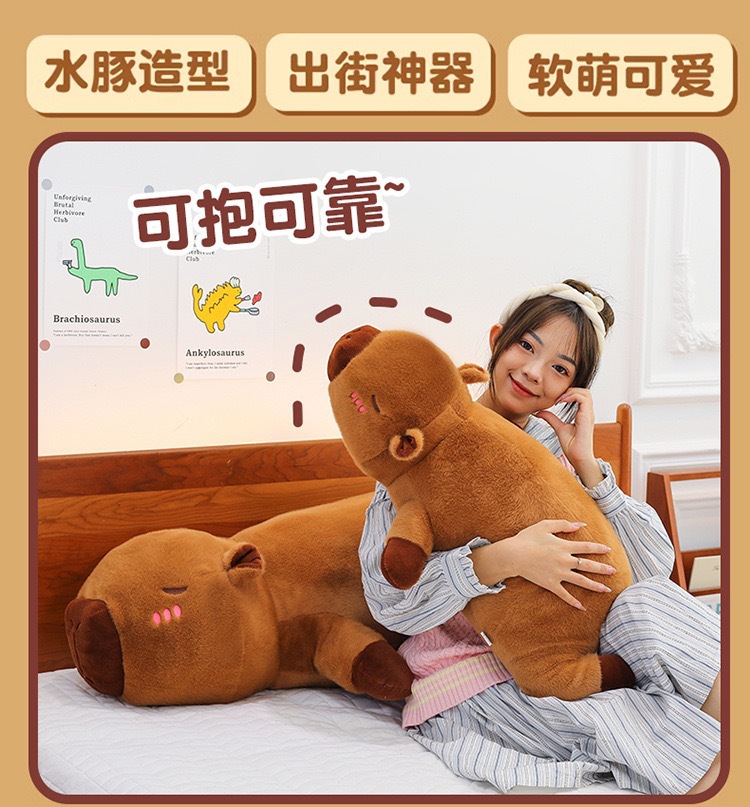 趴款水豚抱枕女生睡觉床上抱睡公仔长条枕毛绒玩具布娃娃生日礼物