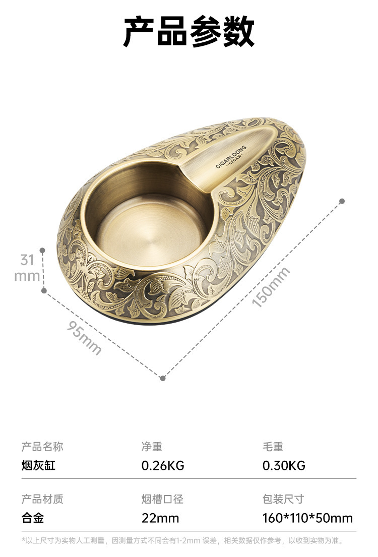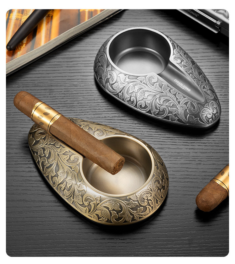 ナス竜 (CIGARLOONG) シガー灰皿大口径灰皿シガー専用実木ゴールド花