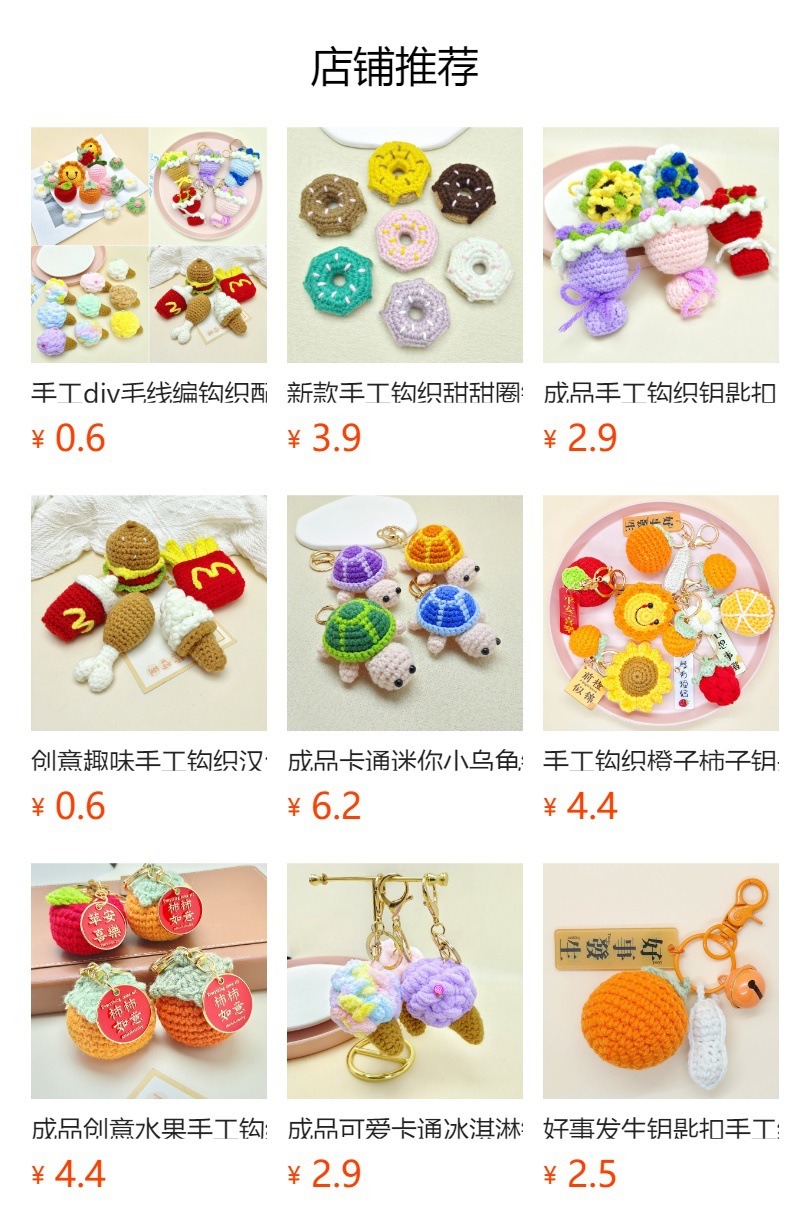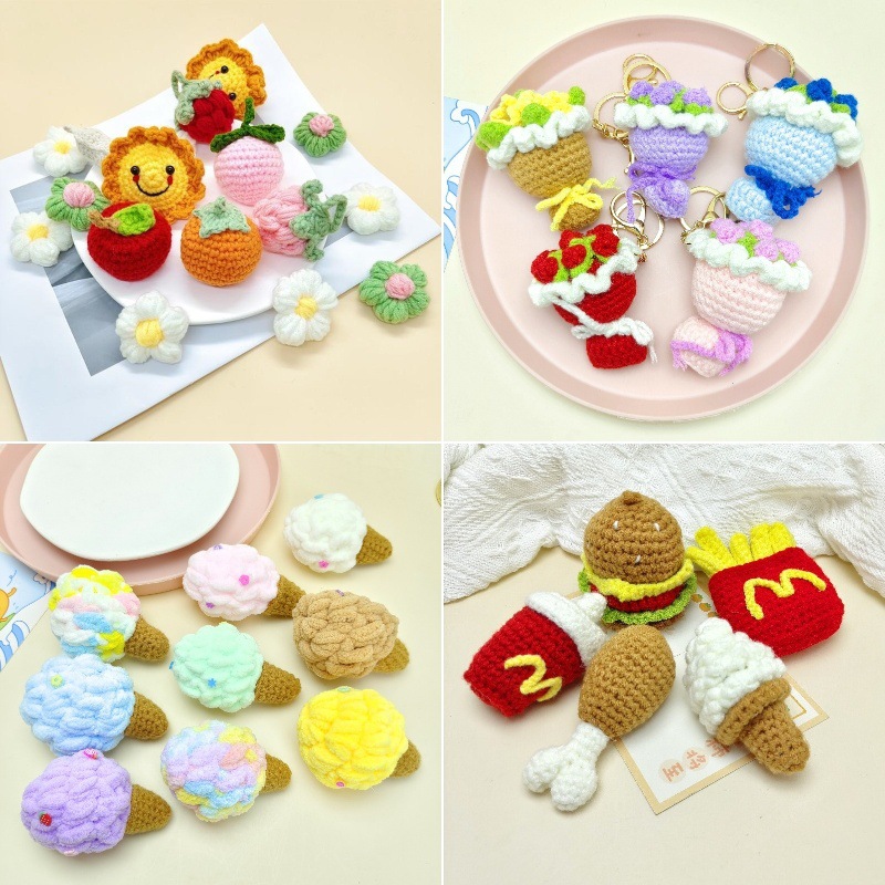 創意趣味手作りかぎ針編みハンバーガーフライドポテトアイスクリームフライドポテトコーラキーホルダーペンダントDIYプレゼントアクセサリー