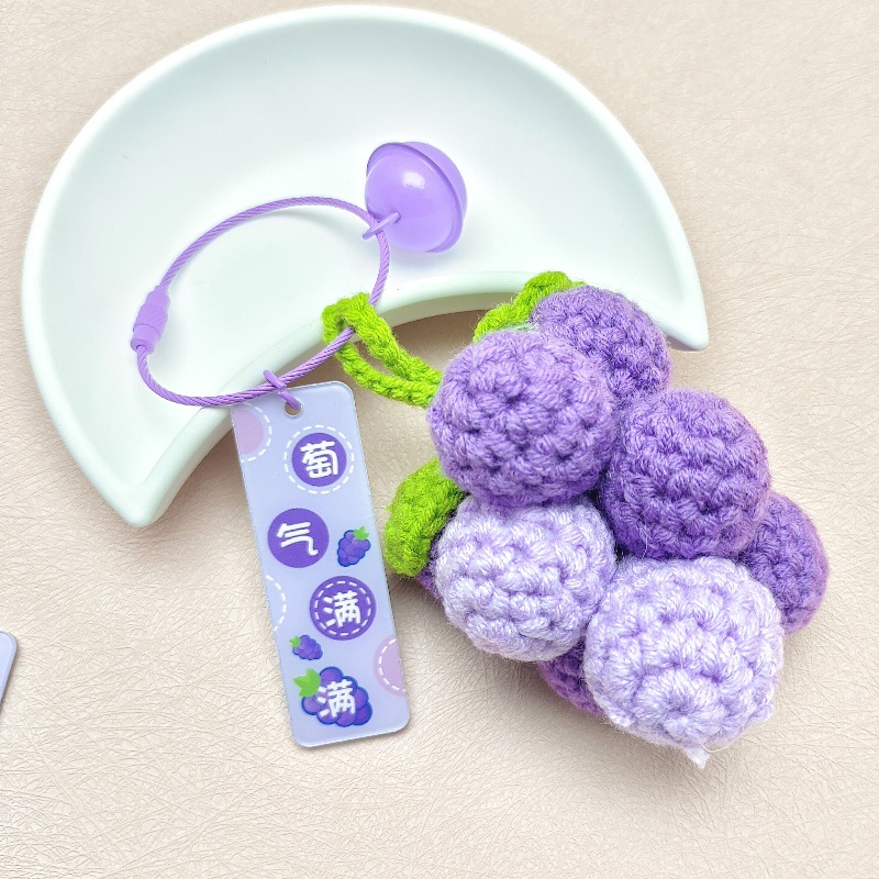 完成品手作りかぎ針編みのぶどうの鍵は果物の合金の鍵の輪を掛けます。