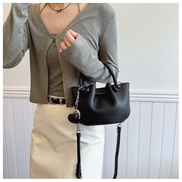 シンプルでファッショナブルな女性用プリーツバケットバッグ 2025 新しいカジュアルショルダークロスボディバッグハイエンド気質母子バッグ