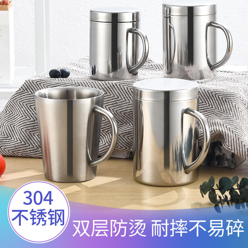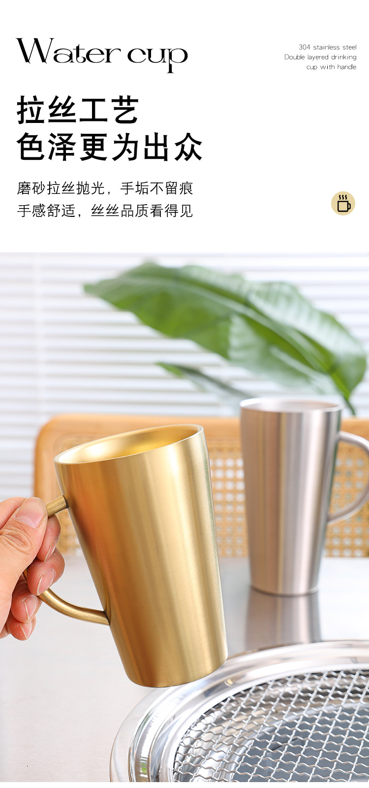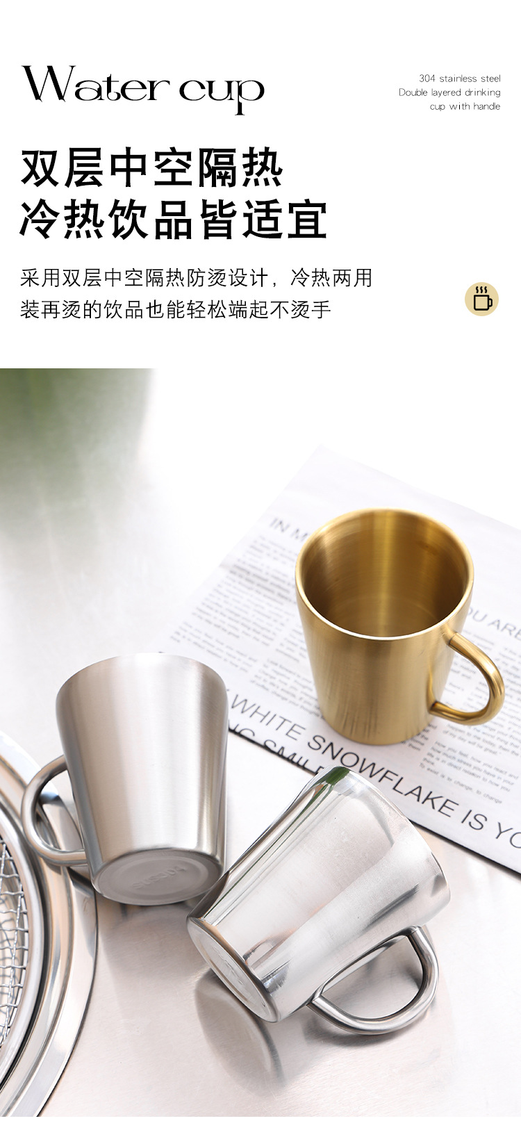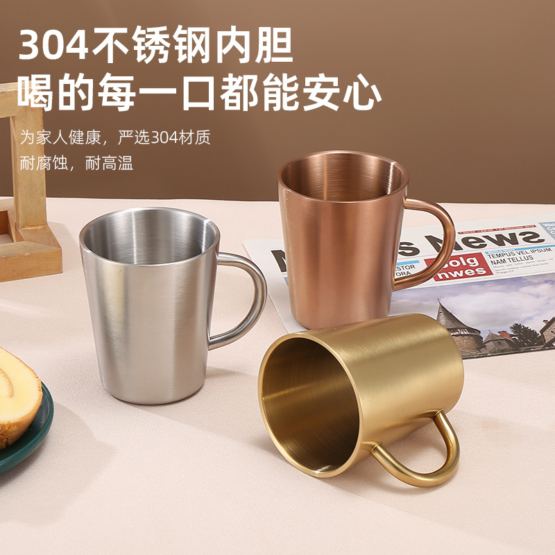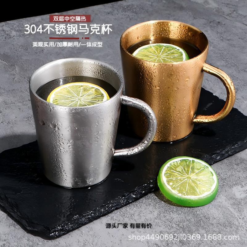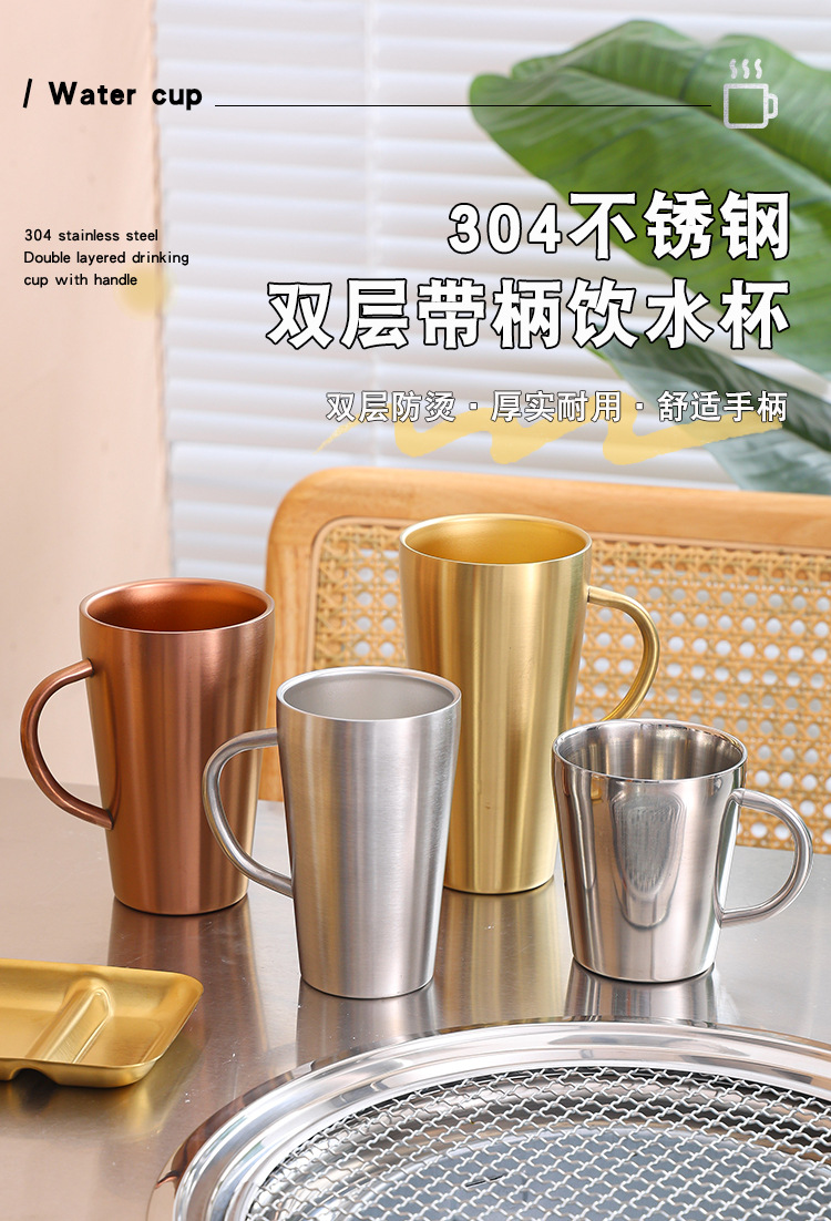 304二層ステンレスコップ取っ手付き牛乳コーヒーカップビールカップ断熱家庭用朝食マークカップ