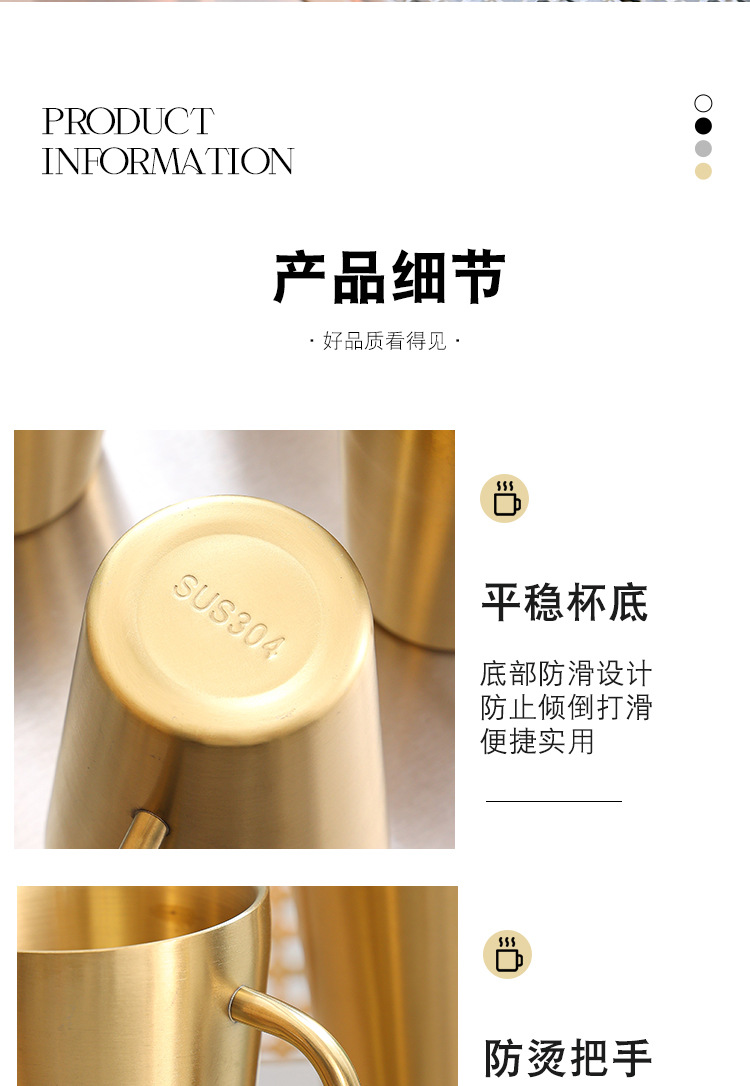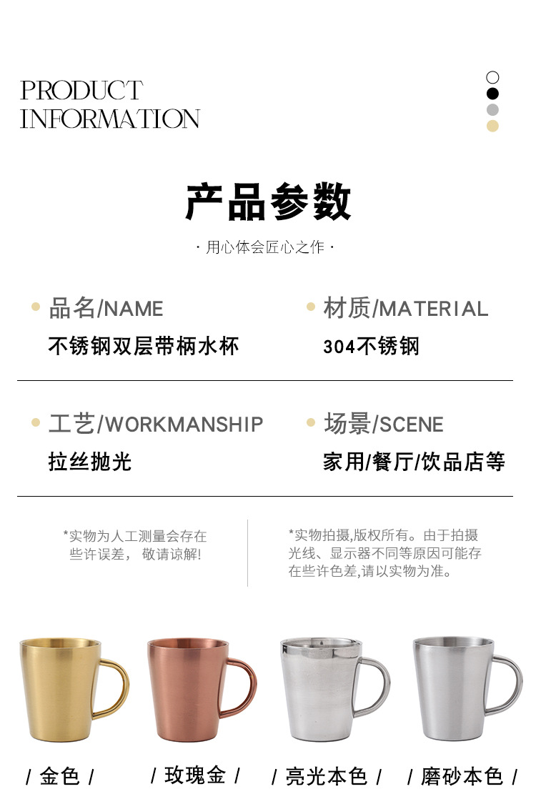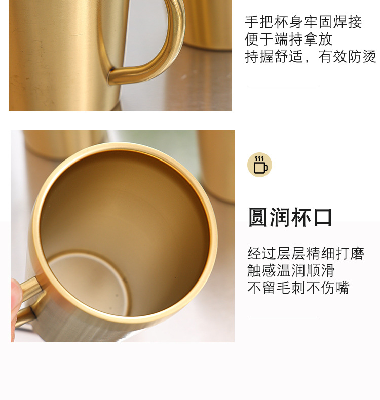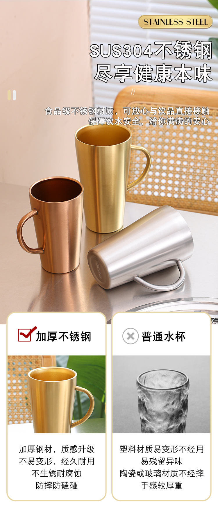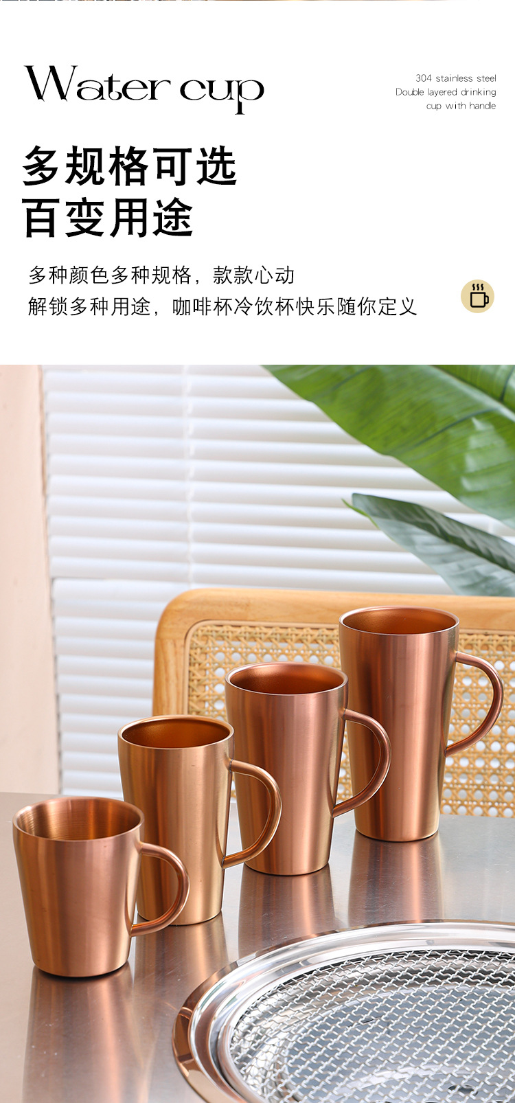 304二層ステンレスコップ取っ手付き牛乳コーヒーカップビールカップ断熱家庭用朝食マークカップ