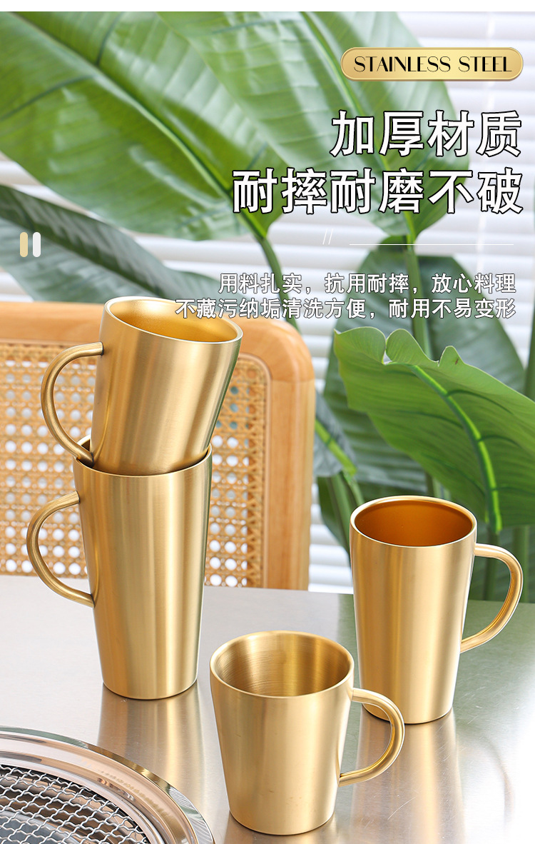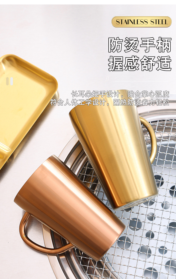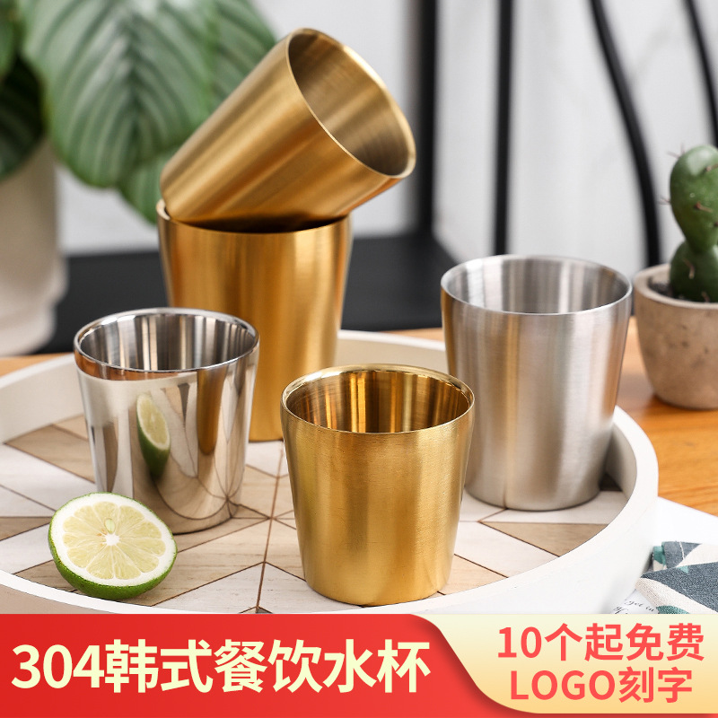 304ステンレス鋼韓国式コップ鍋焼肉店茶水飲料カップビールグラス二重断熱カスタムロゴ