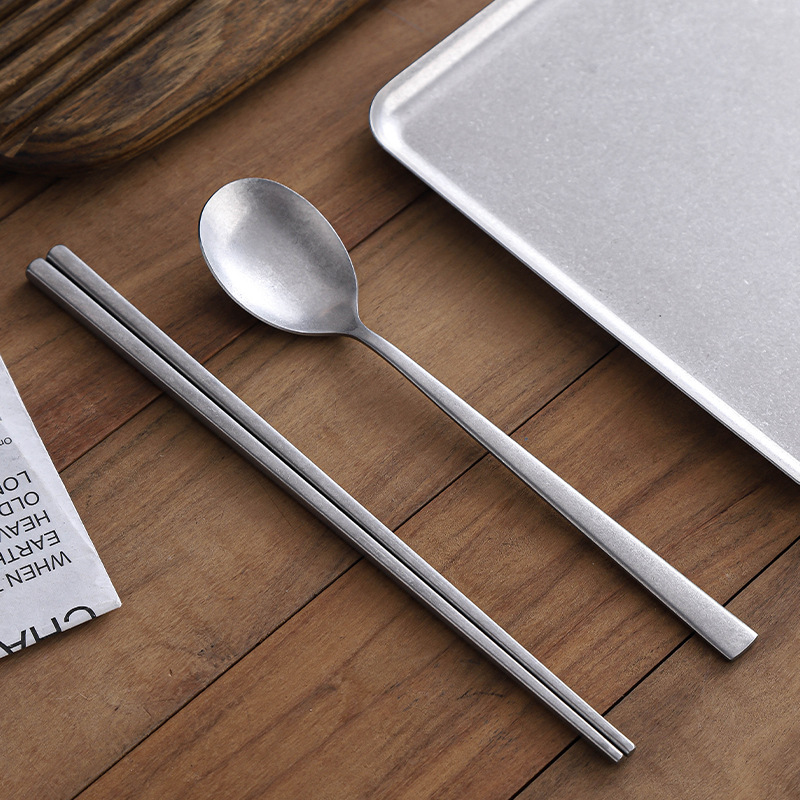 304不锈钢复古勺子筷子韩式烤肉火锅店勺筷组合做旧风定制logo