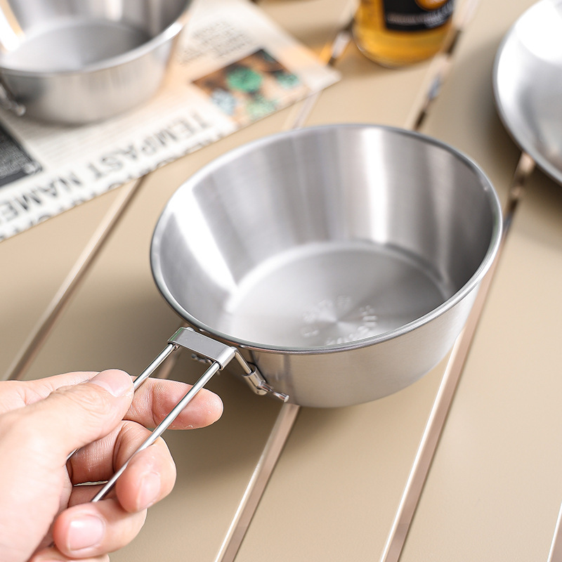 キャンプ折りたたみ酒ボウル 304 ステンレス鋼屋外ポータブルベーキングボウルハンドル付きバーベキューシラーボウルカスタムロゴ