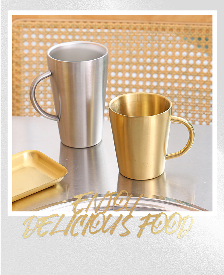 韓国スタイルの304ステンレス鋼カップ、二重層断熱ハンドル付きウォーターカップ、ビールカップ、ホームレストランコーヒーマグ
