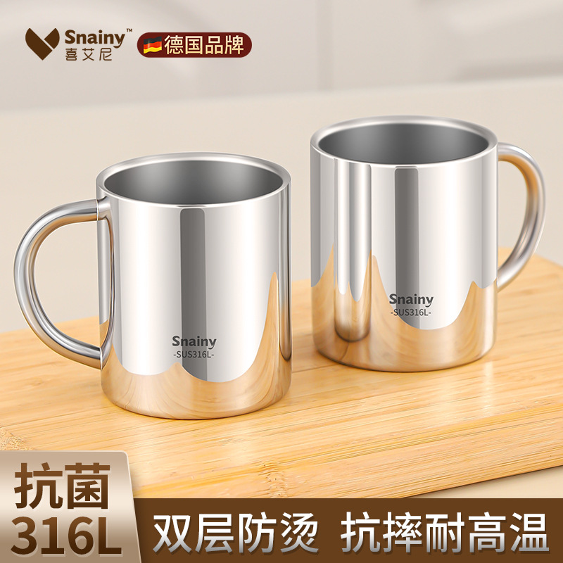 316不锈钢杯子食品级家用茶杯儿童喝水杯双层防摔口杯茶缸子
