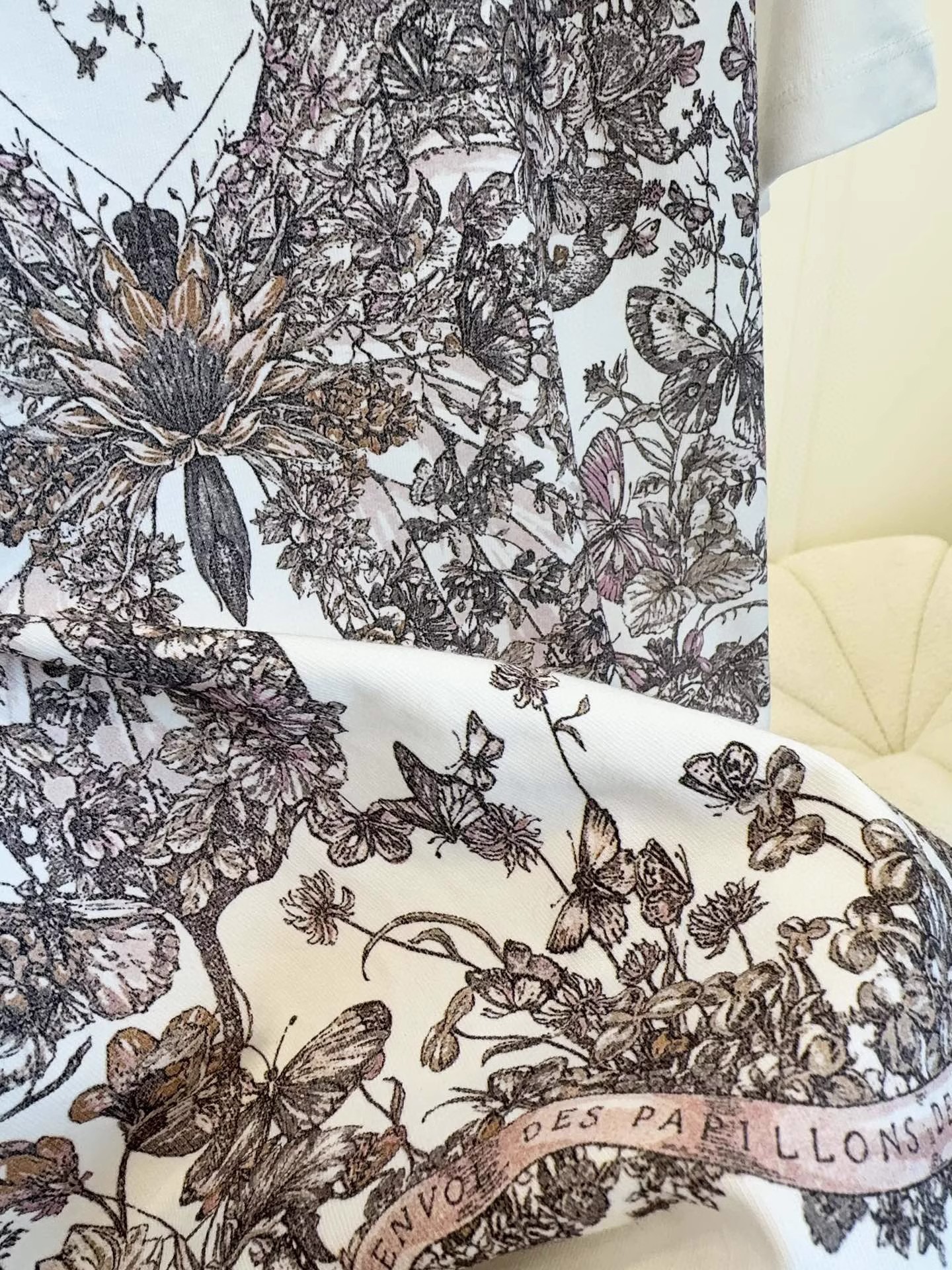 現物D家2025早春の新型大蝶小ミツバチプリント綿質亜麻混紡薄手半袖tシャツ女