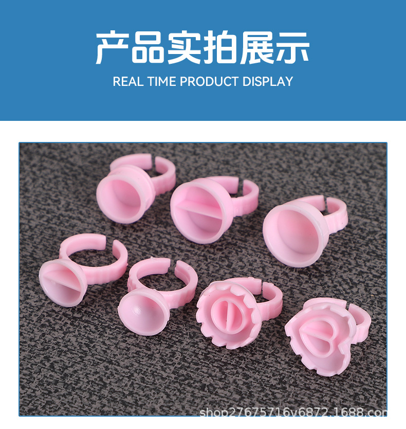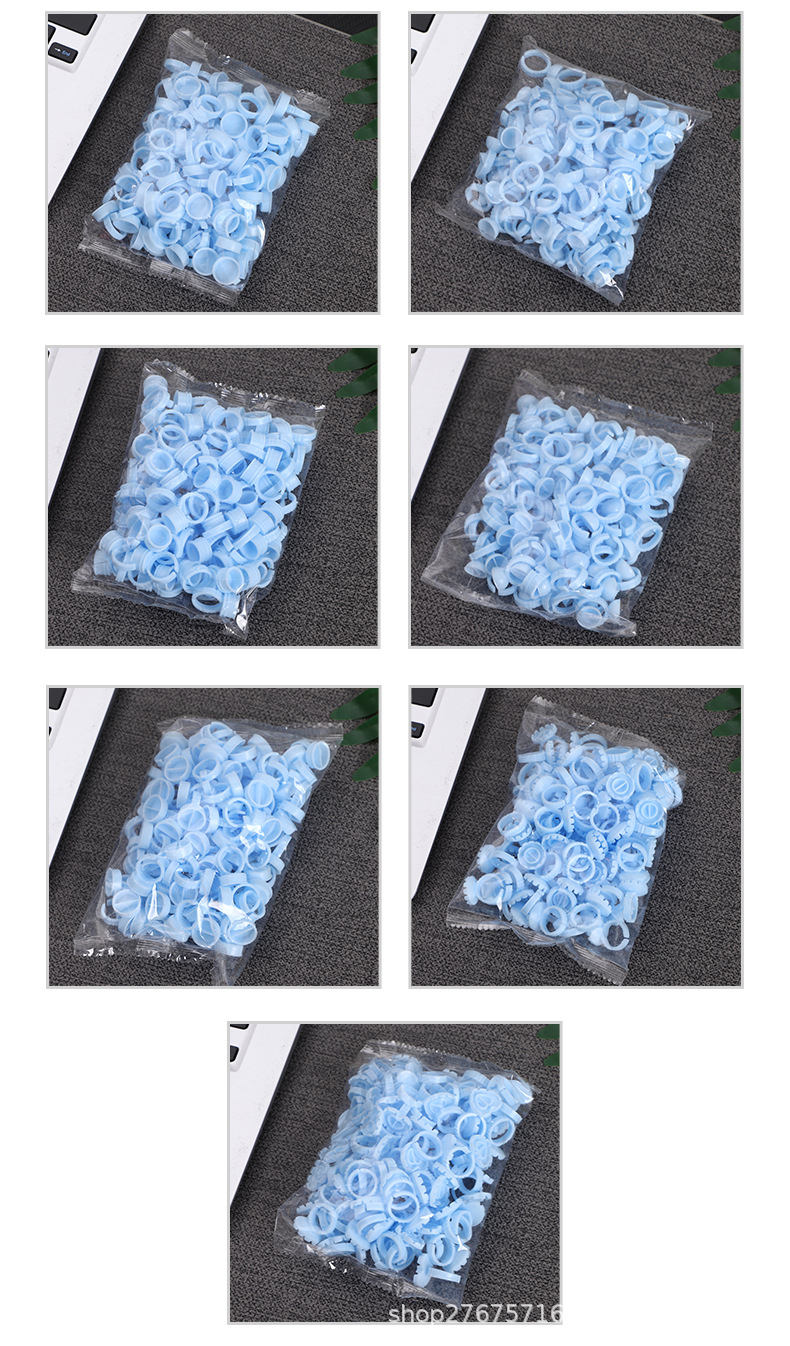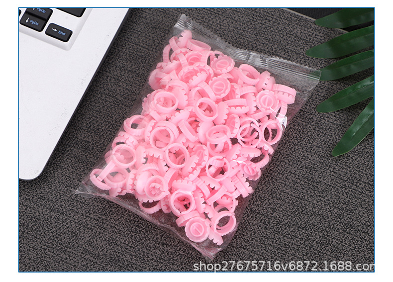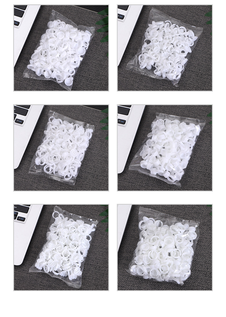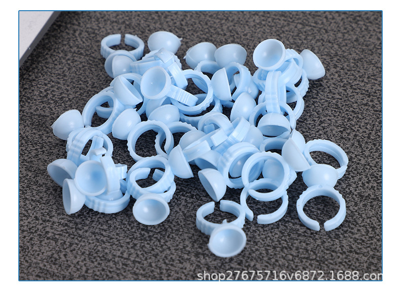国境を越えたメーカーによるまつげエクステ用リングカップ、タトゥー用カラー料カップ、大小の接着剤カップ、接着剤100個入り