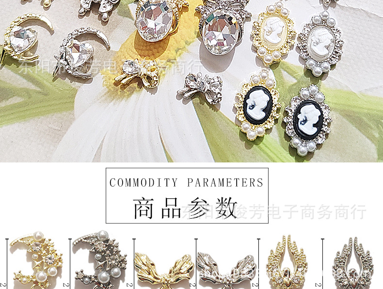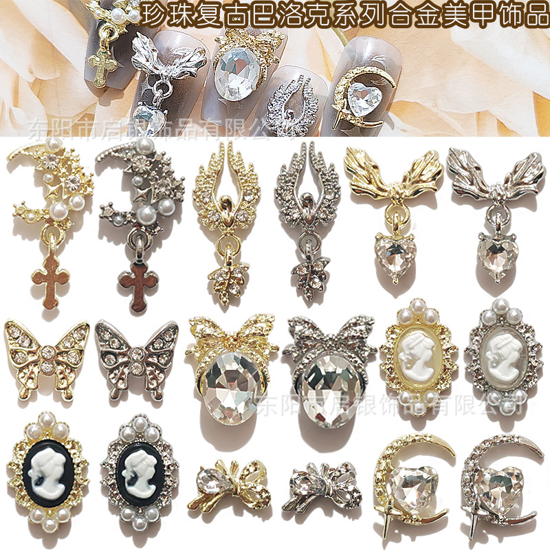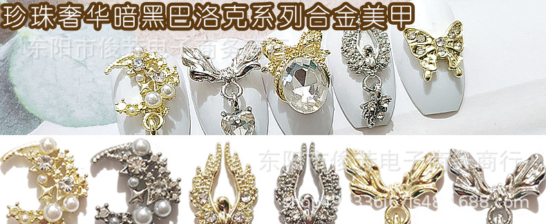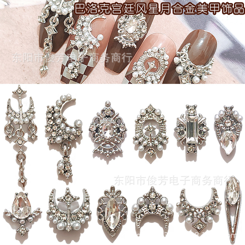 LZ同じタイプのネイル合金アクセサリー星月に真珠の豪華な宮廷の暗黒バロック風の爪を入れて貼ります。