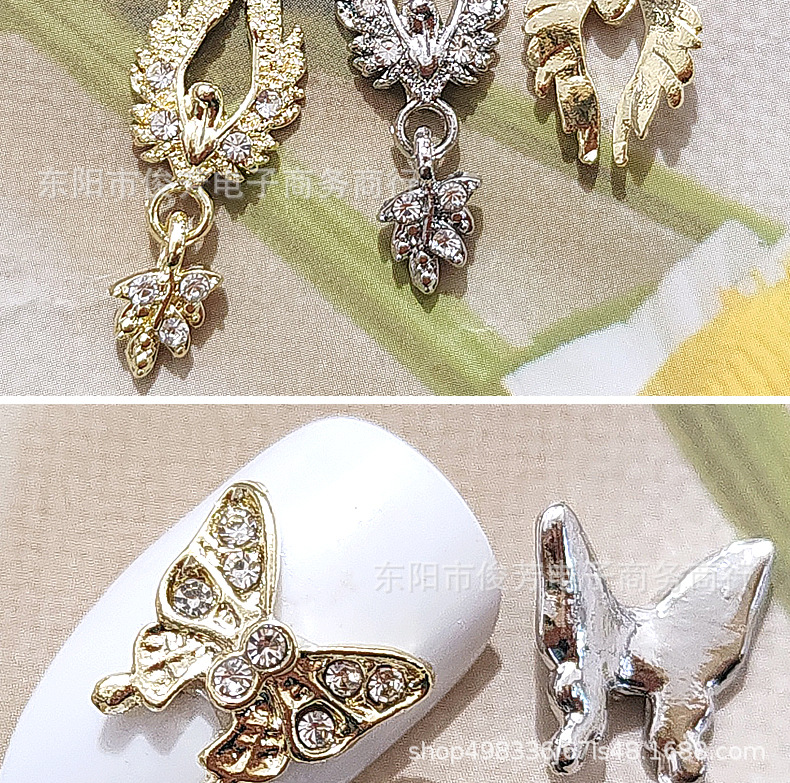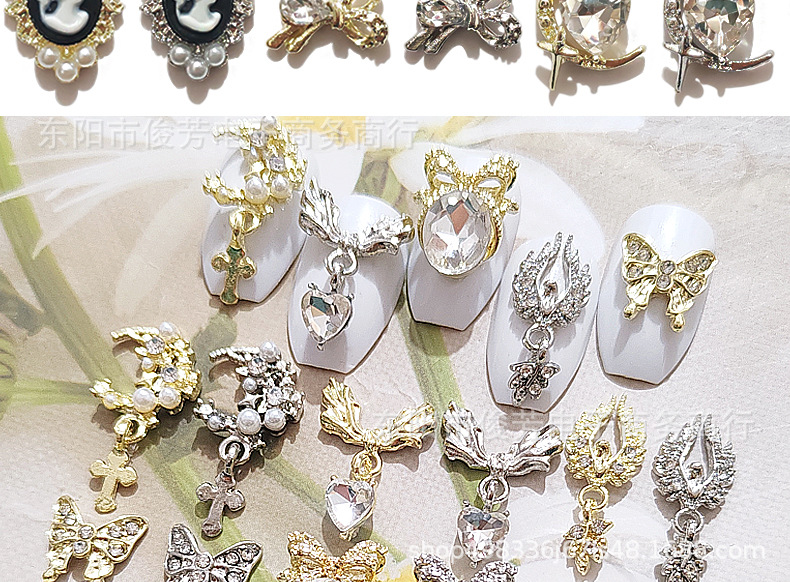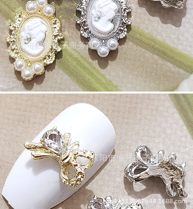 ネット赤LZネイル合金アクセサリーバロック天使美人頭翼真珠愛蝶装飾爪貼り