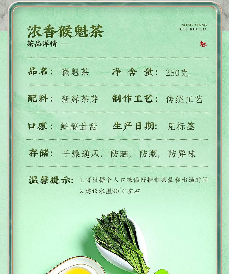 新茶発売 太平布尖猴貴 手摘み原産地茶 250g 箱入り 春茶 緑茶