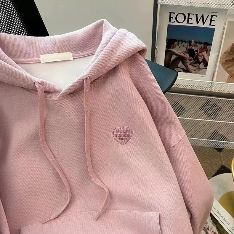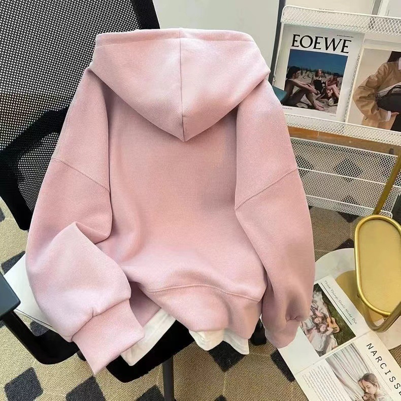 2025年新款潮牌春秋冬薄款连帽套头卫衣女加绒加厚宽松外套上衣潮