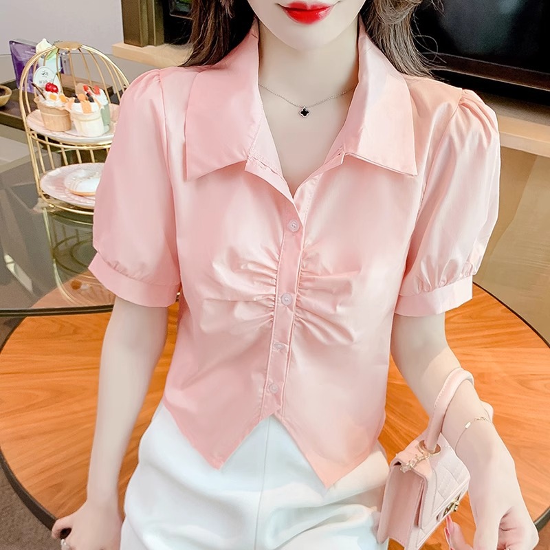 不规则衬衫短袖女夏季2025年新款泡泡袖小衫别致小众独特短款上衣