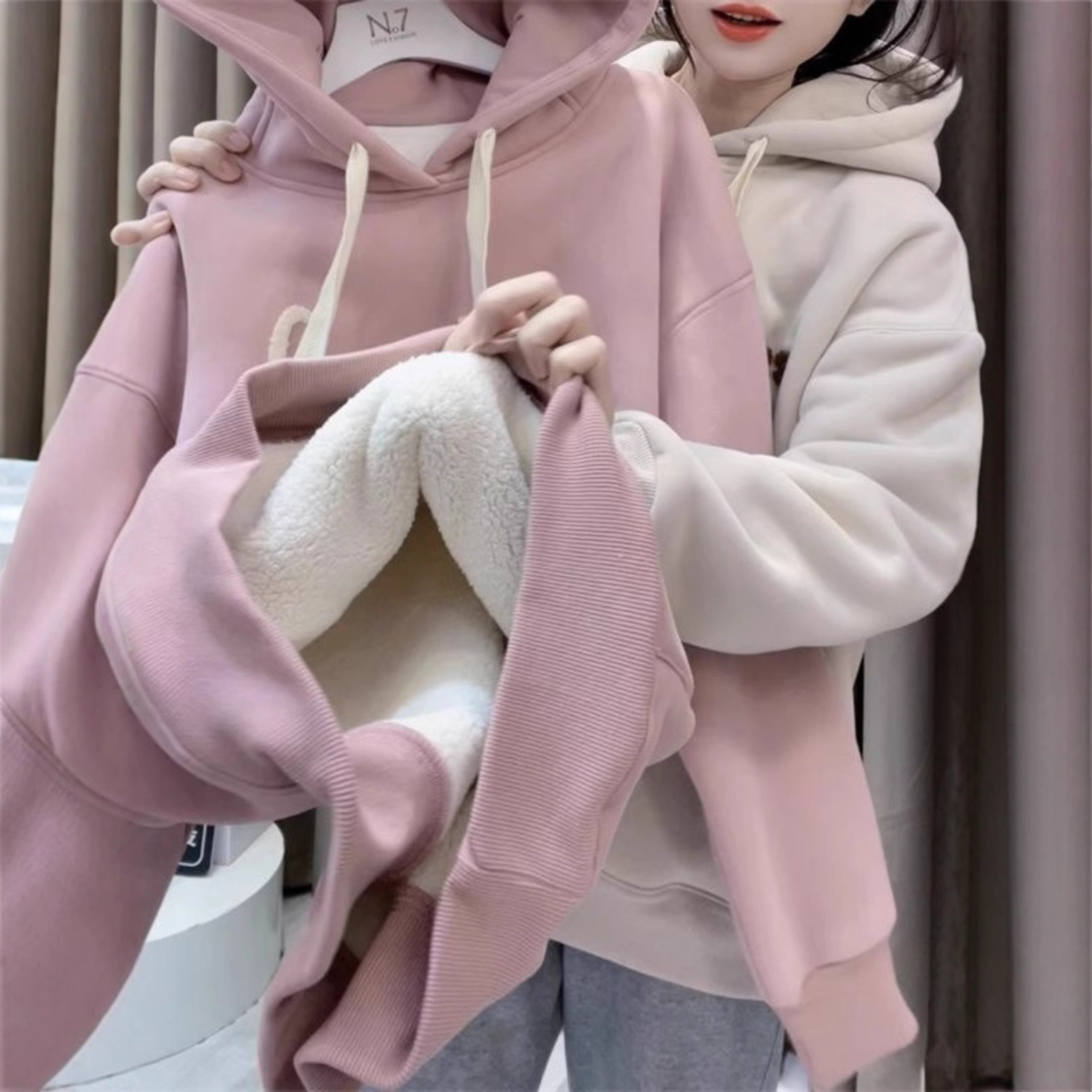 【官图实价~华棉复合北极绒 】北极绒加绒加厚连帽卫衣女