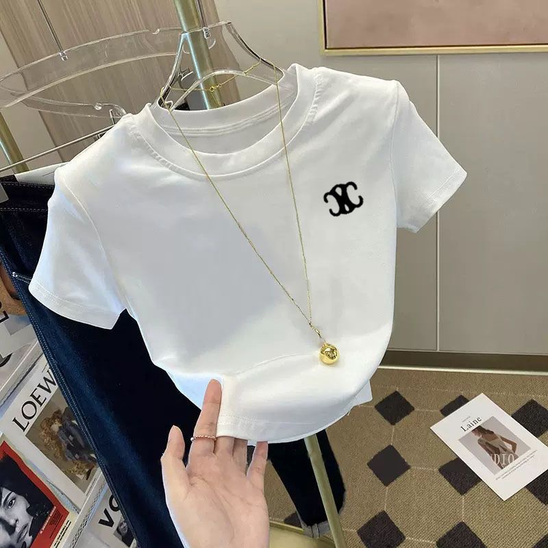 设计感小众粉色正肩短款T恤女上衣2025夏季新款修身洋气显瘦短袖