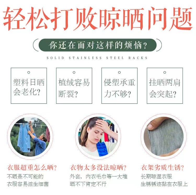 凱旺ステンレス大ハンガー太さ5/6/7mm中実干しハンガー防風ハンガー干し布団ハンガー