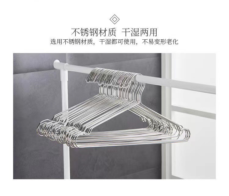 不锈钢衣架304家用挂衣凉晾挂钩架子衣服撑子铁加粗加厚大衣衣挂