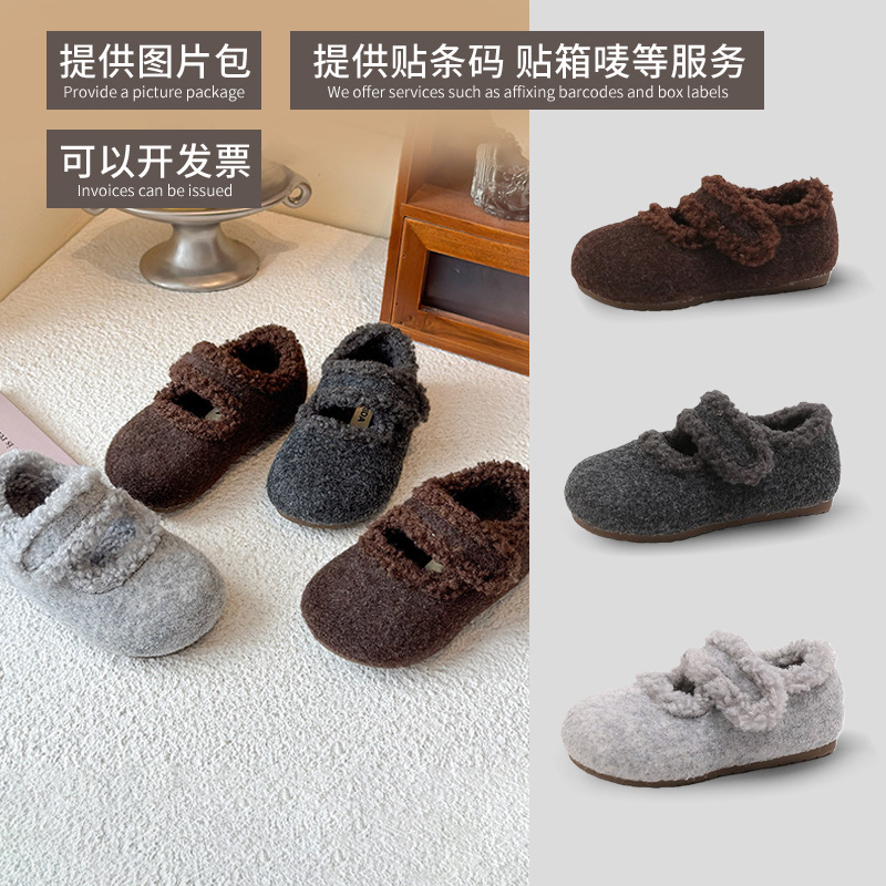 儿童棉鞋冬季保暖加绒宝宝毛毛鞋包跟跨境热销女童软底加厚鞋子