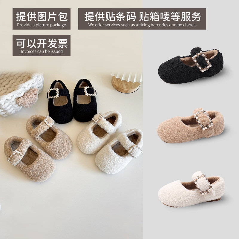 女童棉鞋【珍珠毛毛鞋】25冬季加绒可爱奶奶鞋小大童浅口泰迪毛鞋