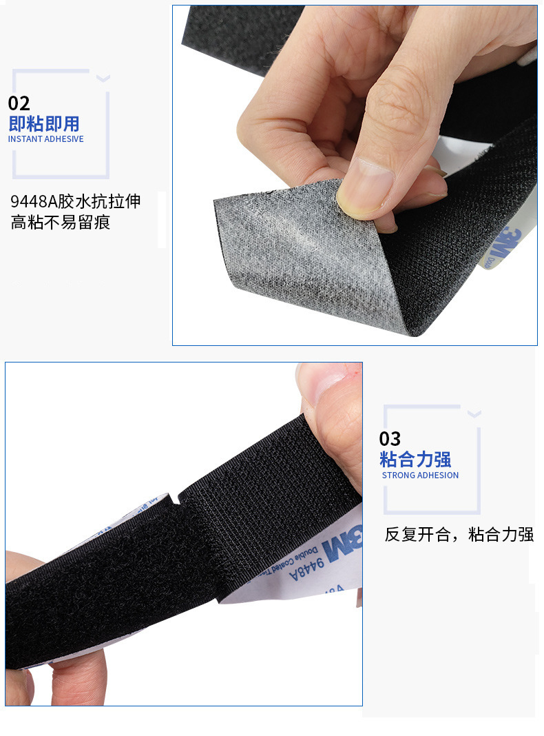 3m粘着ベルクロストリップ、フックとループの留め具、9448Aベルクロ粘着ベルクロ、車のフロアマットの強力な固定に特化