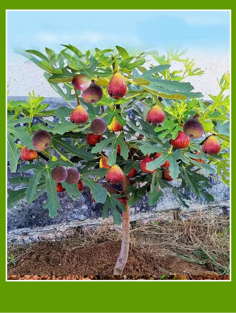 特大果実と果実鉢付きのイチジクの苗木、ポージーレッドボルドー、南北四季植え、耐寒性地植え